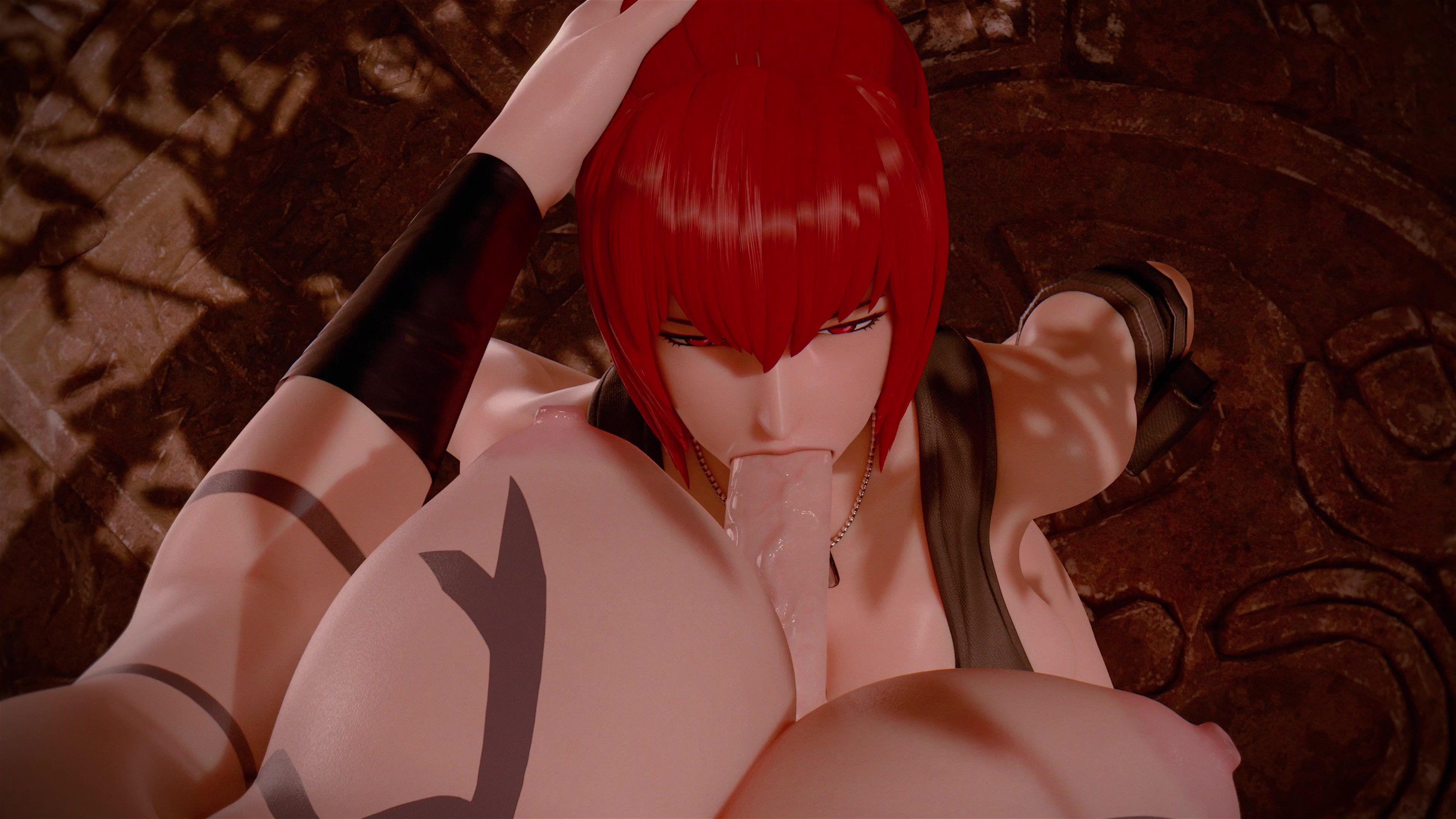 'Leona and Orochi Fucking with Bouquetman in a No-Warned Blowjob Scene'