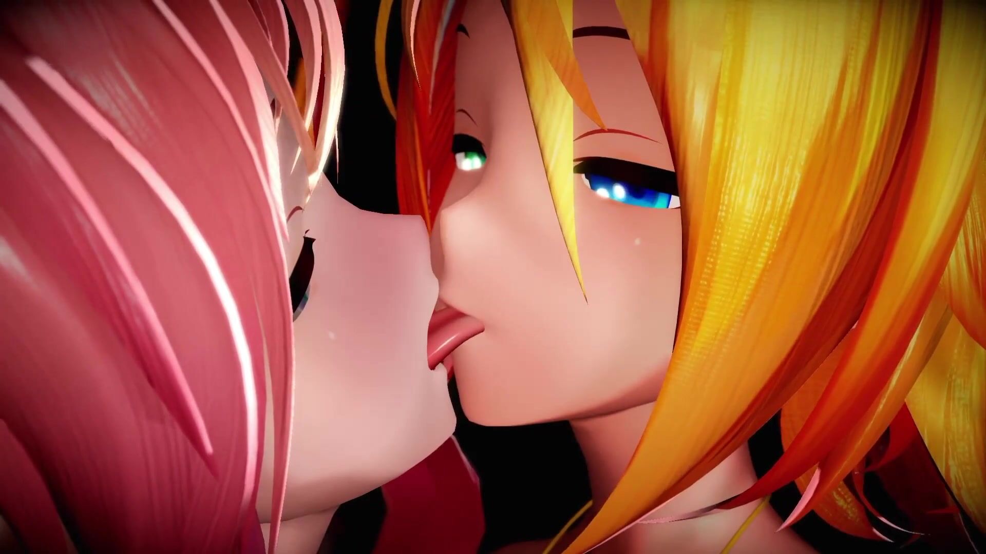 "Loving embraces of lesbian Vocaloids, passionate kisses in French."