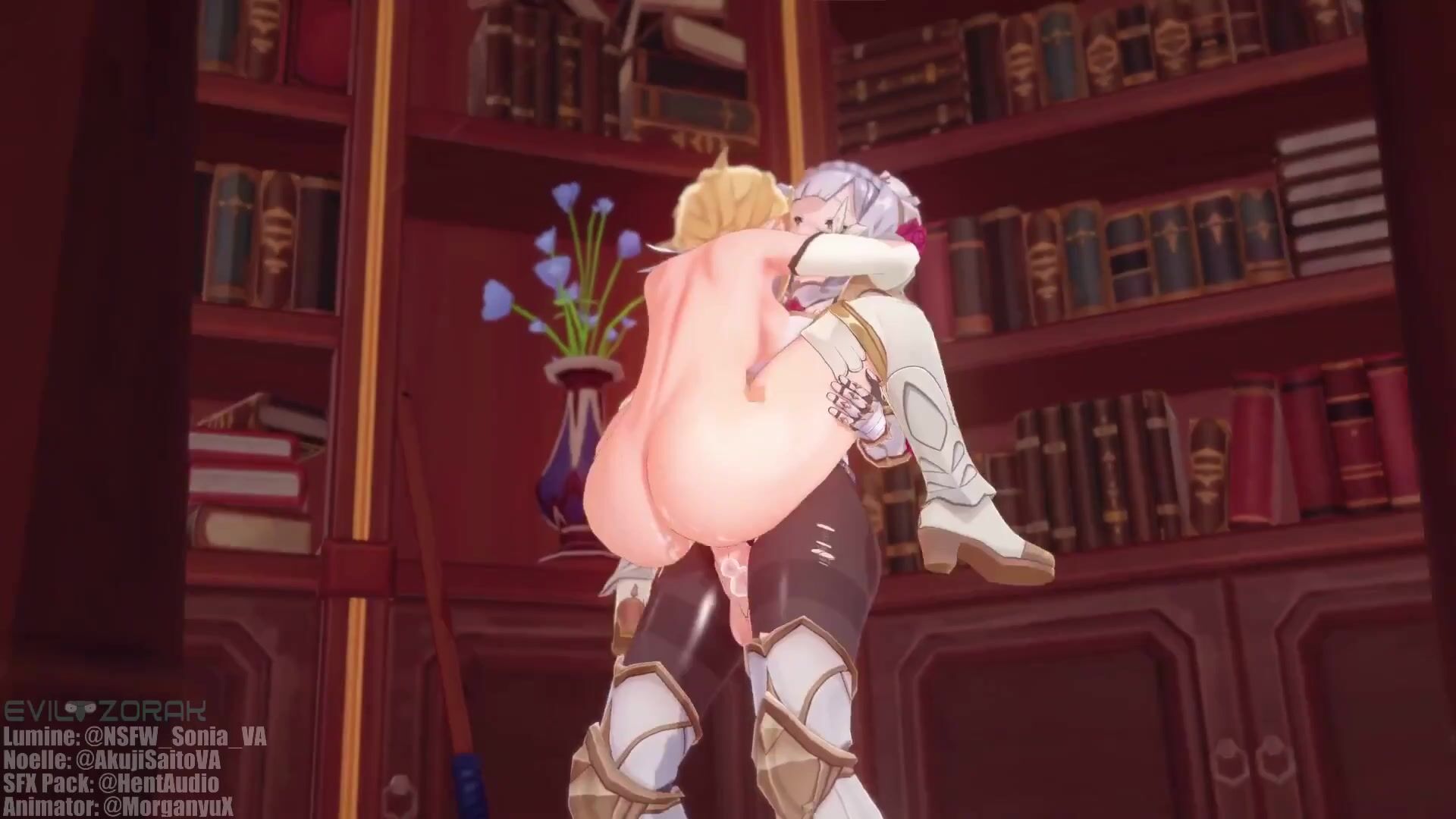 This hentai PORN video features the characters Noelle and Hong Cha, who are animated by Akuji Saito. The scene is directed by Animator3A, with sound effects provided by HentAudio Pack. NSFW Sonia VA also makes an appearance, and the SFX are by Akuji Saito VA. The video description promises a steamy scene between Noelle and Hong Cha, which will be animated by MorganyuX.