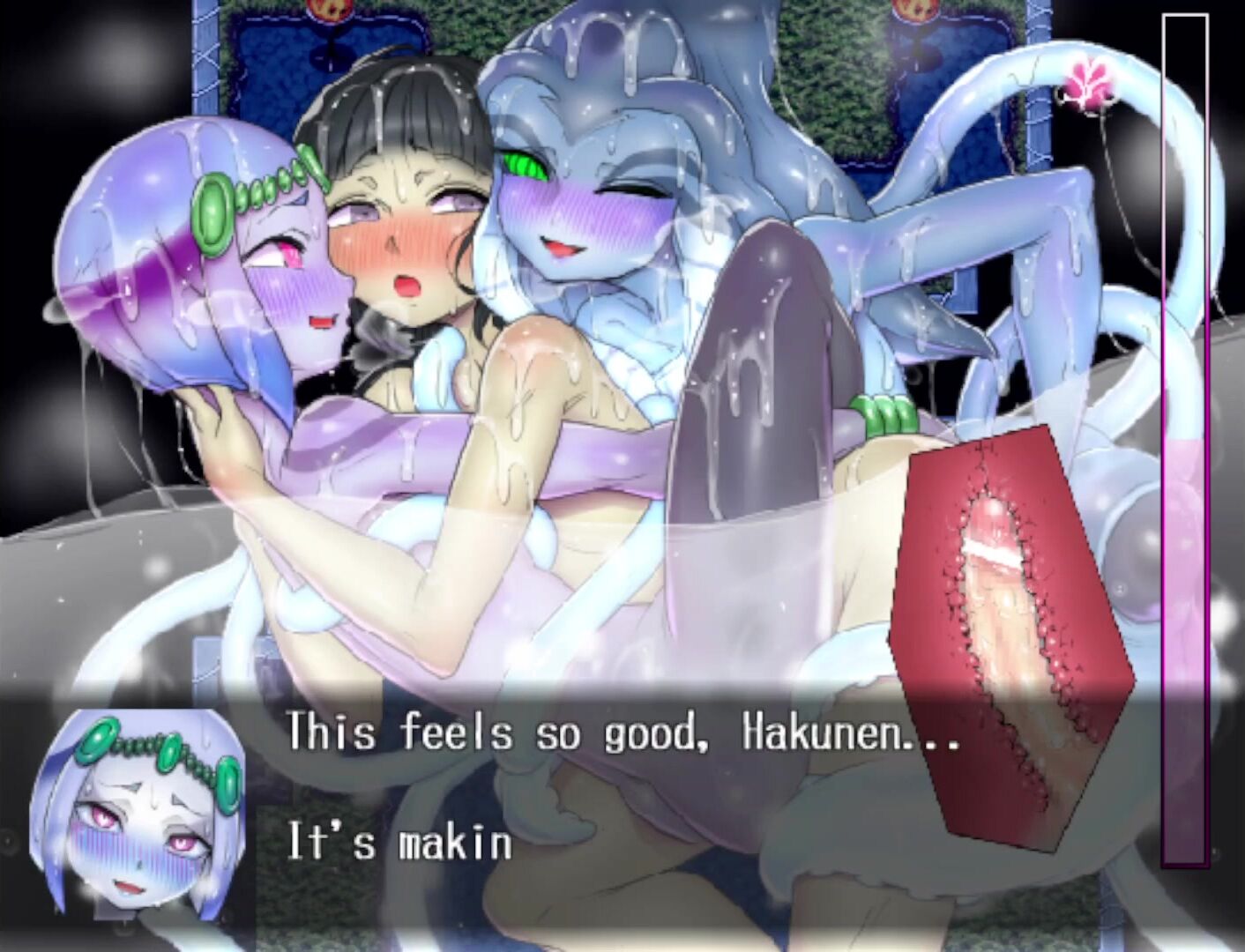 Hentai porn description: Hakunen goes to investigate a nearby cave, not knowing it's a slimy trap that will make him lose his virginity.
