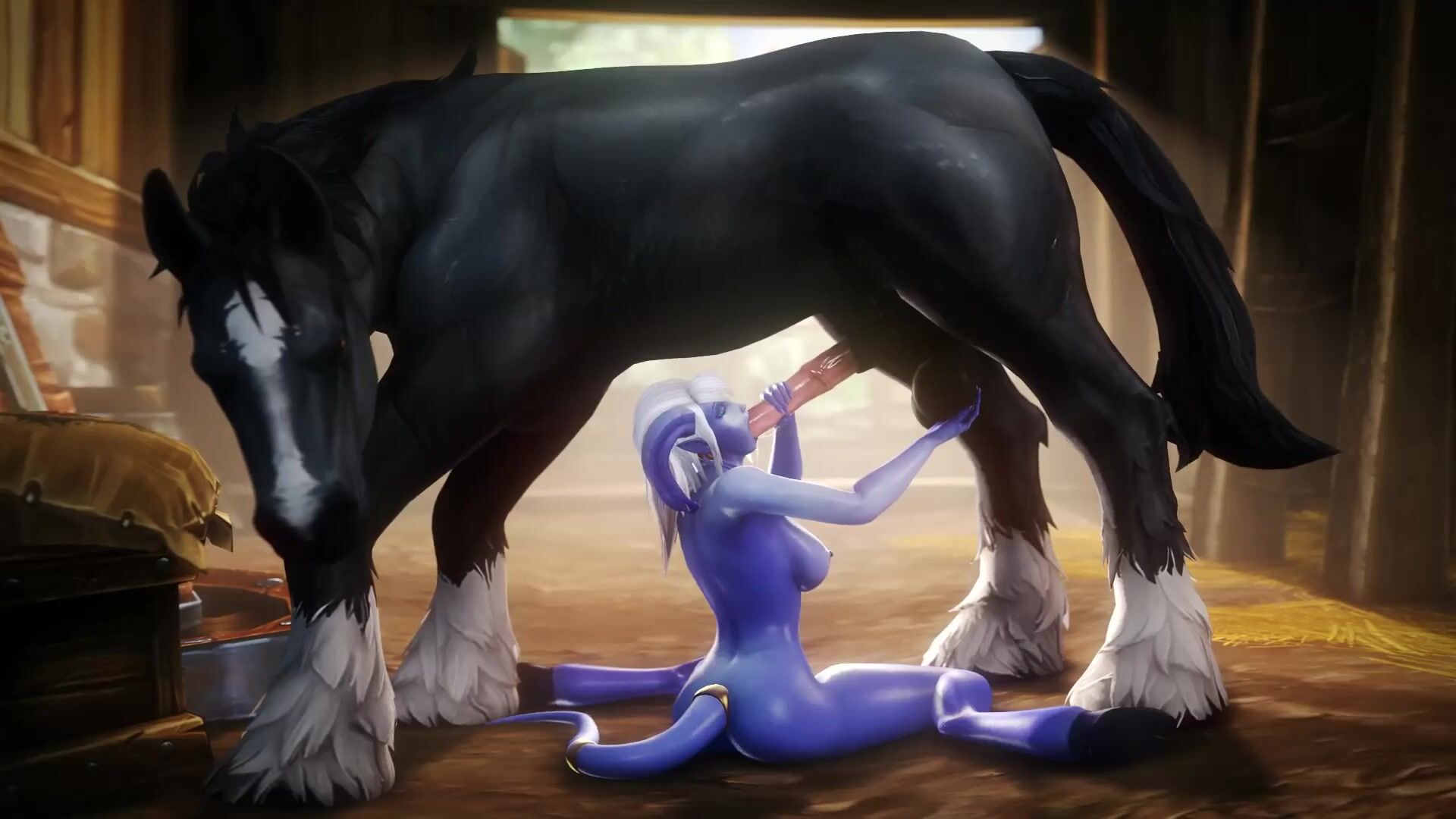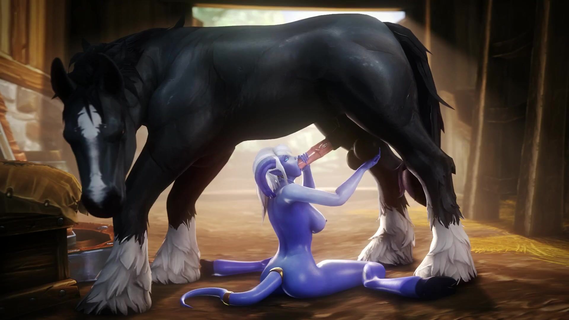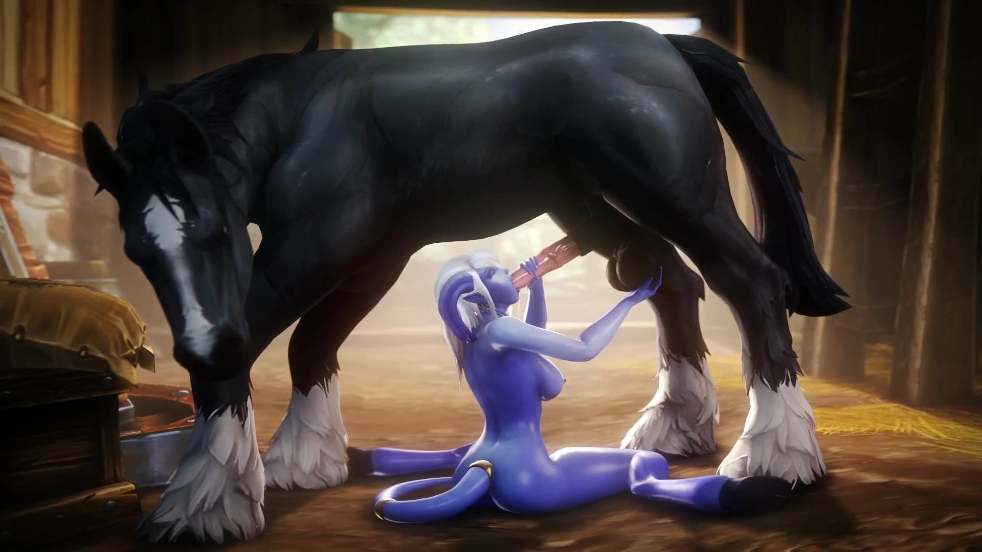 Majestic Draenei Priestess Gives Blowjob to a Giant Stallion (noname55)