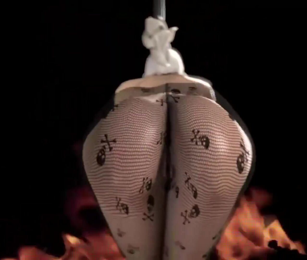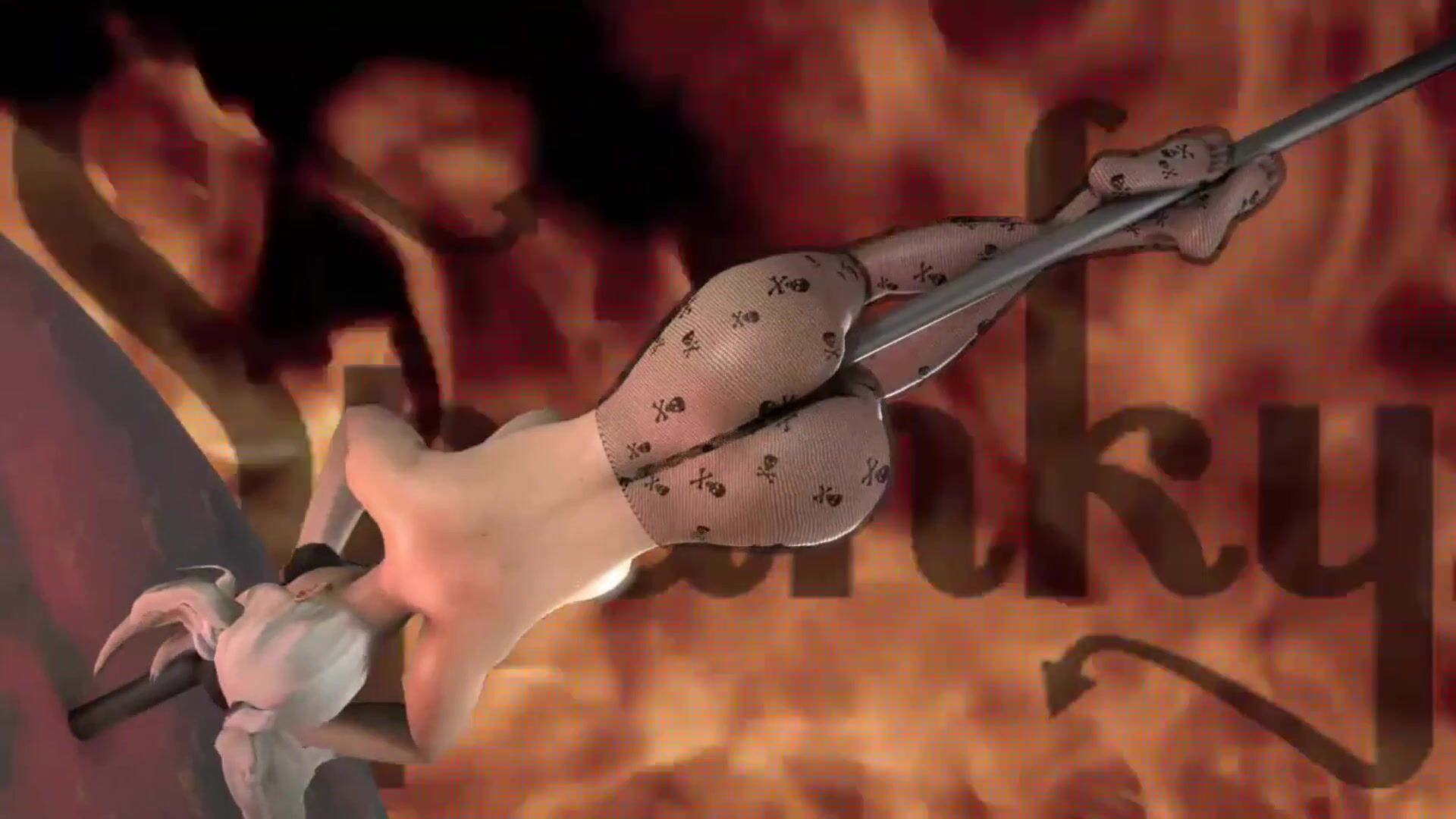 Mercy, the gothic stripper, pleasures herself with a dildo while banging her head to some metal music