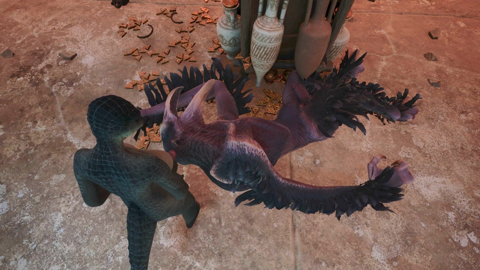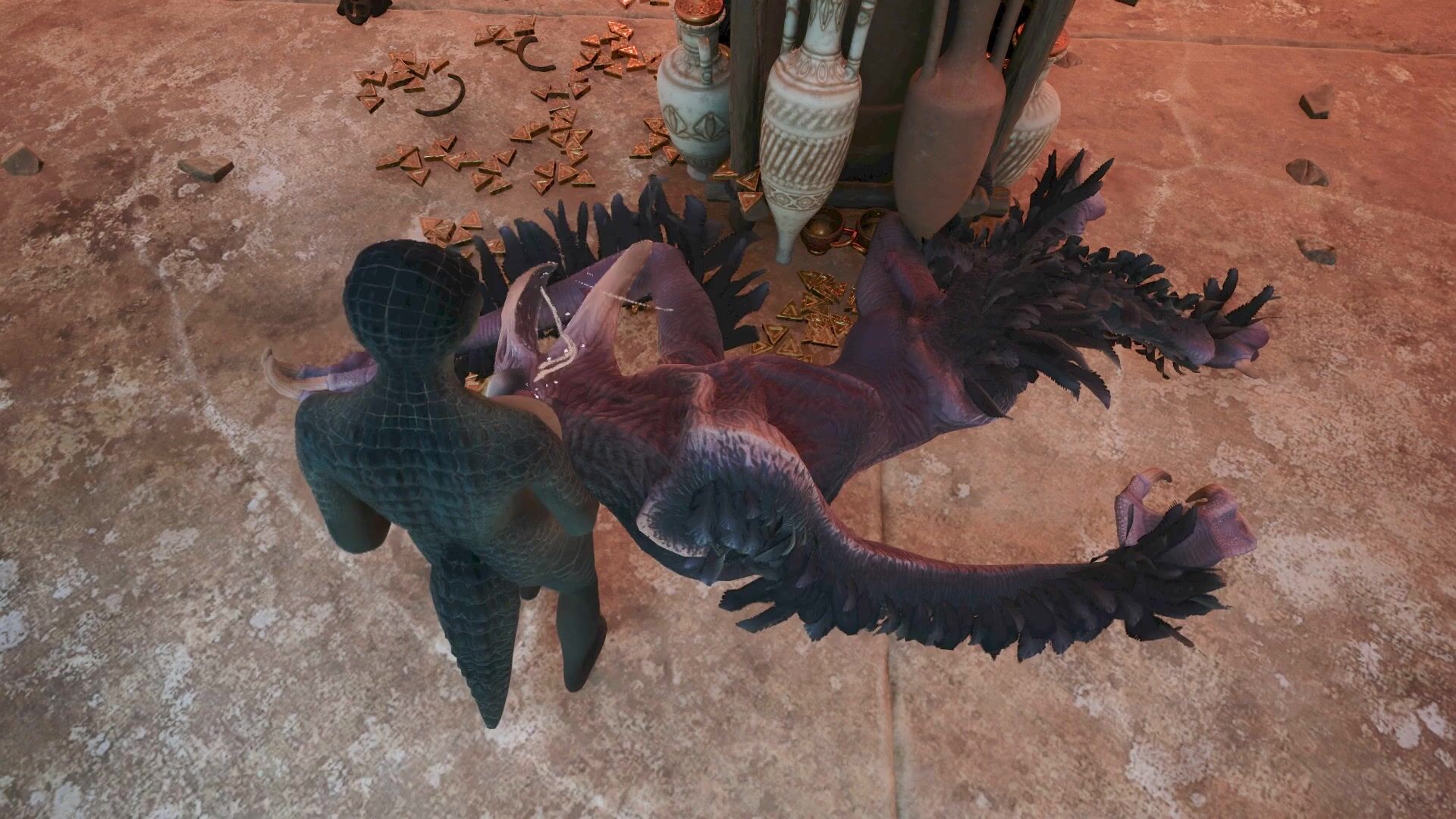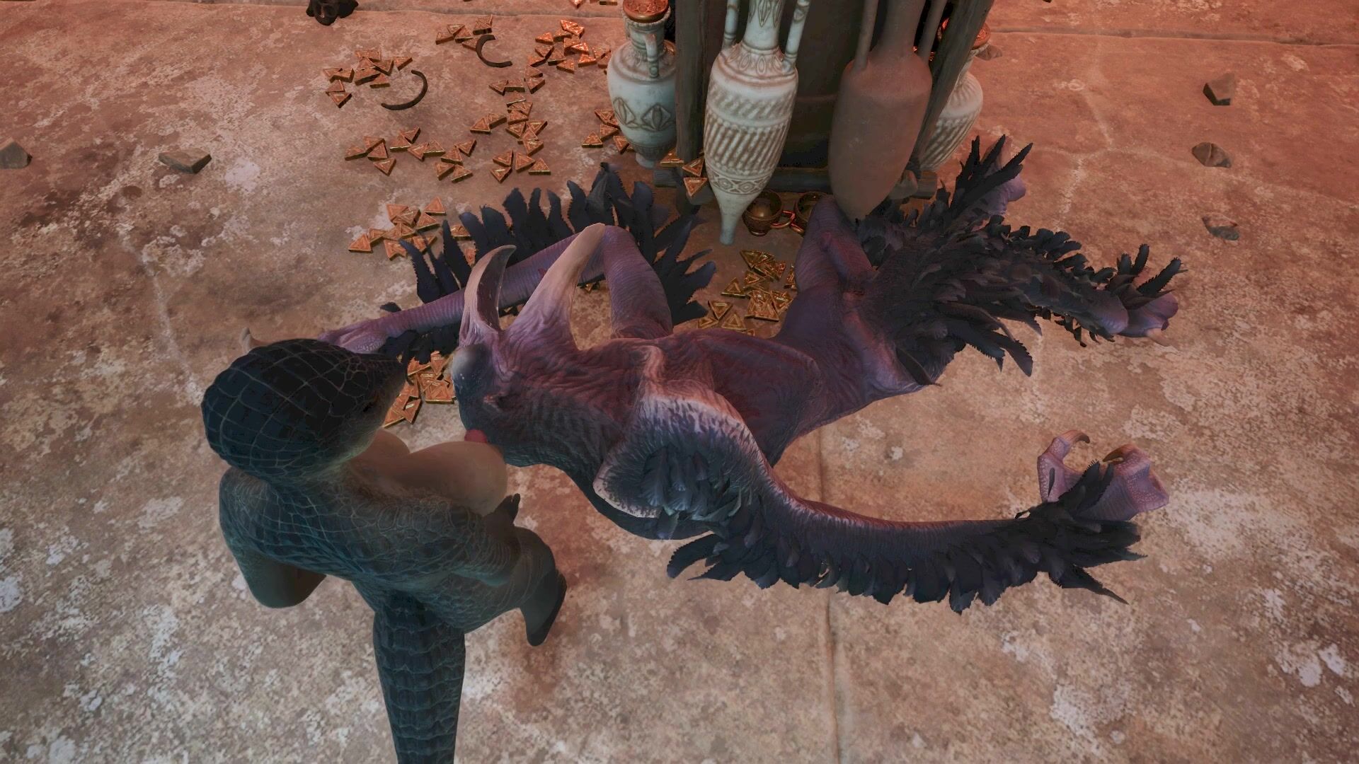 Mighty Crocodilian Futa Cumming on Majestic Bird of Massive Proportions