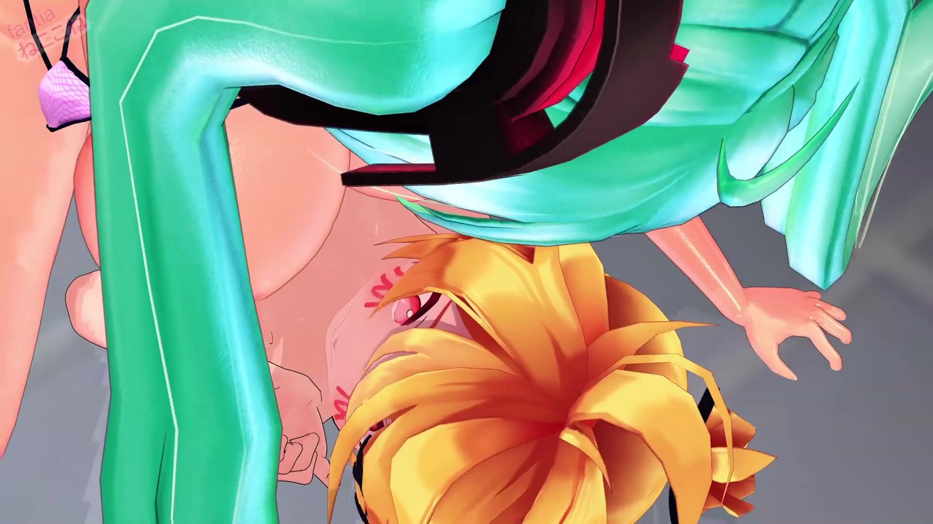 Miku and Neko take a steamy shower together, their bodies gleaming with water droplets as they caress each other sensually