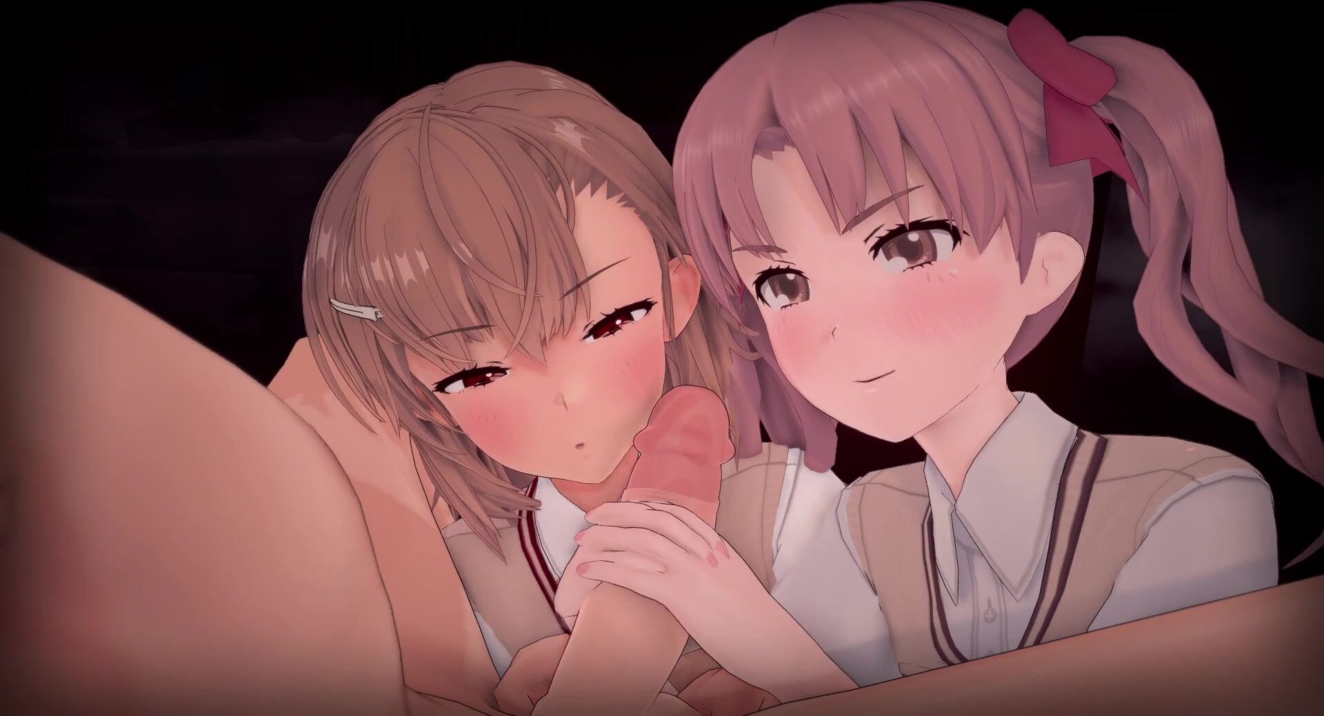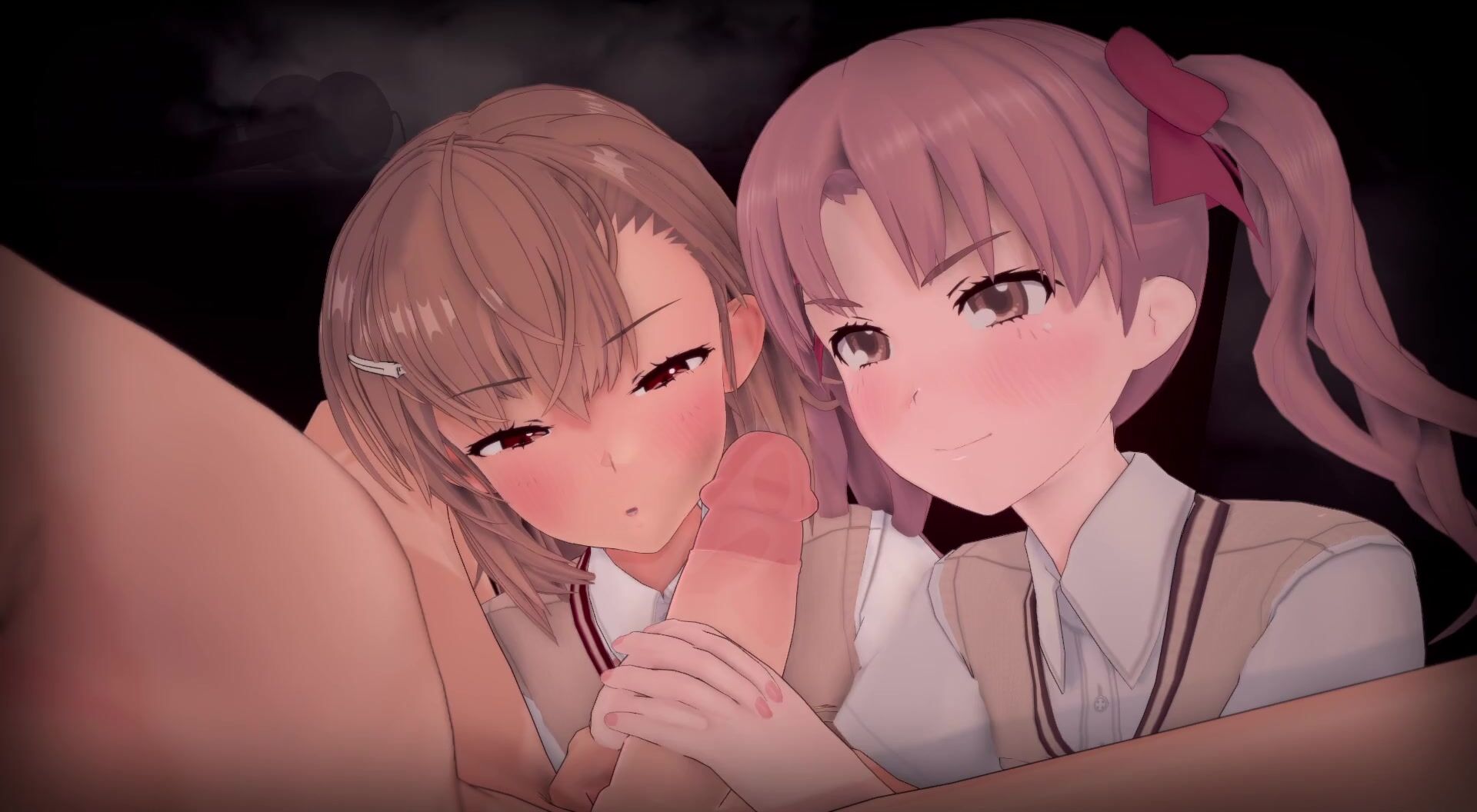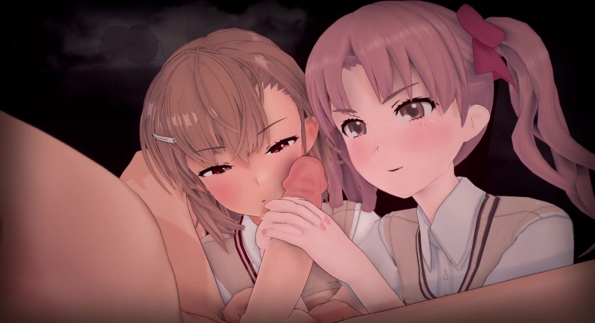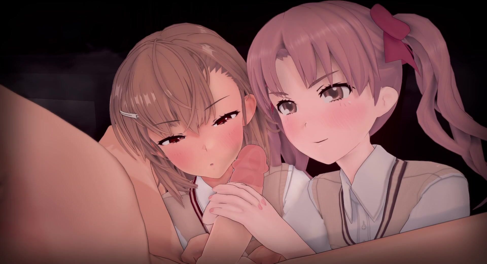 Misaka and Kuroko engage in a sensual handjob during the full moon.