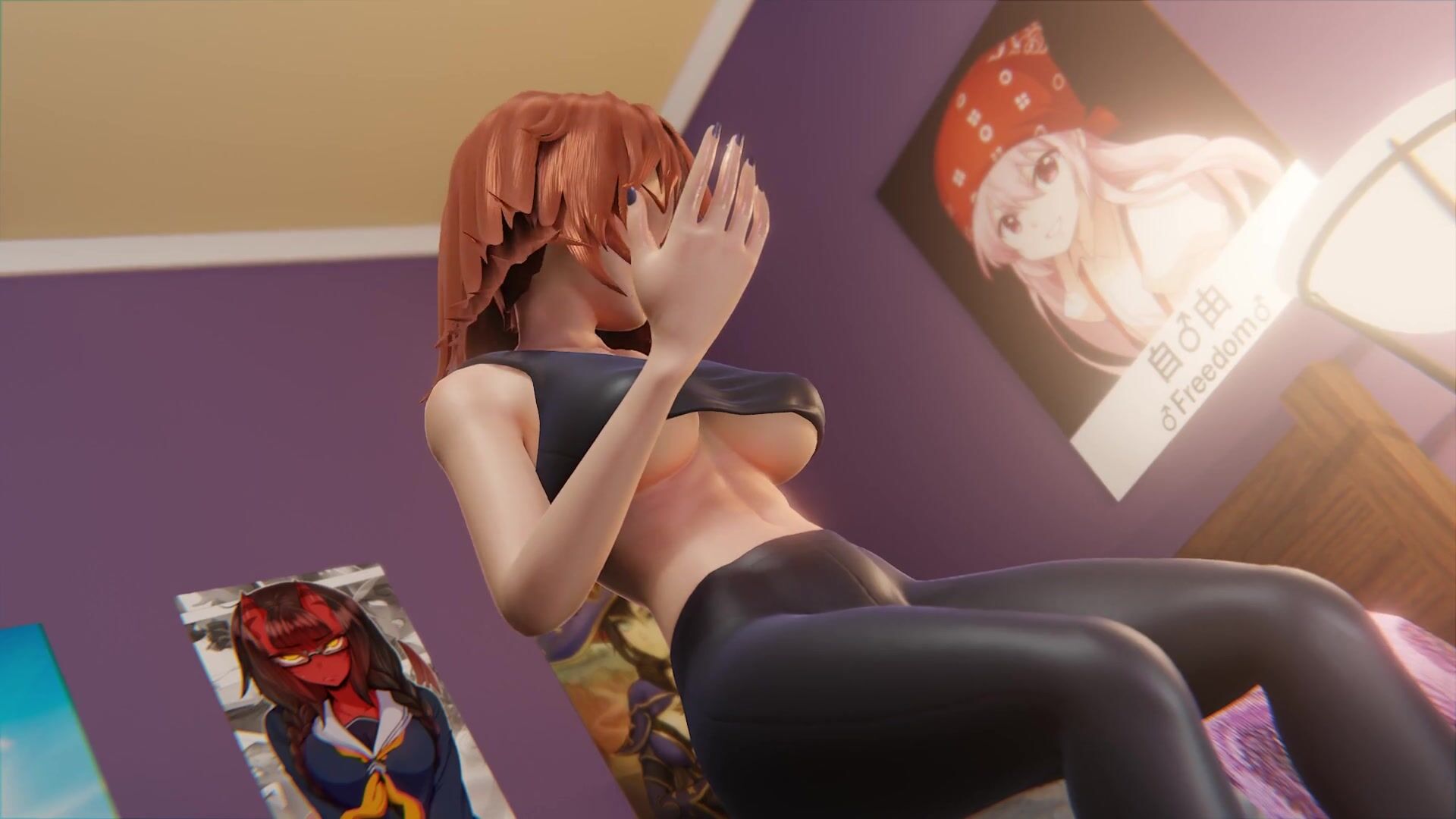 Sue notices that she's wearing extremely stretchy leggings, so she wants to test their limit.