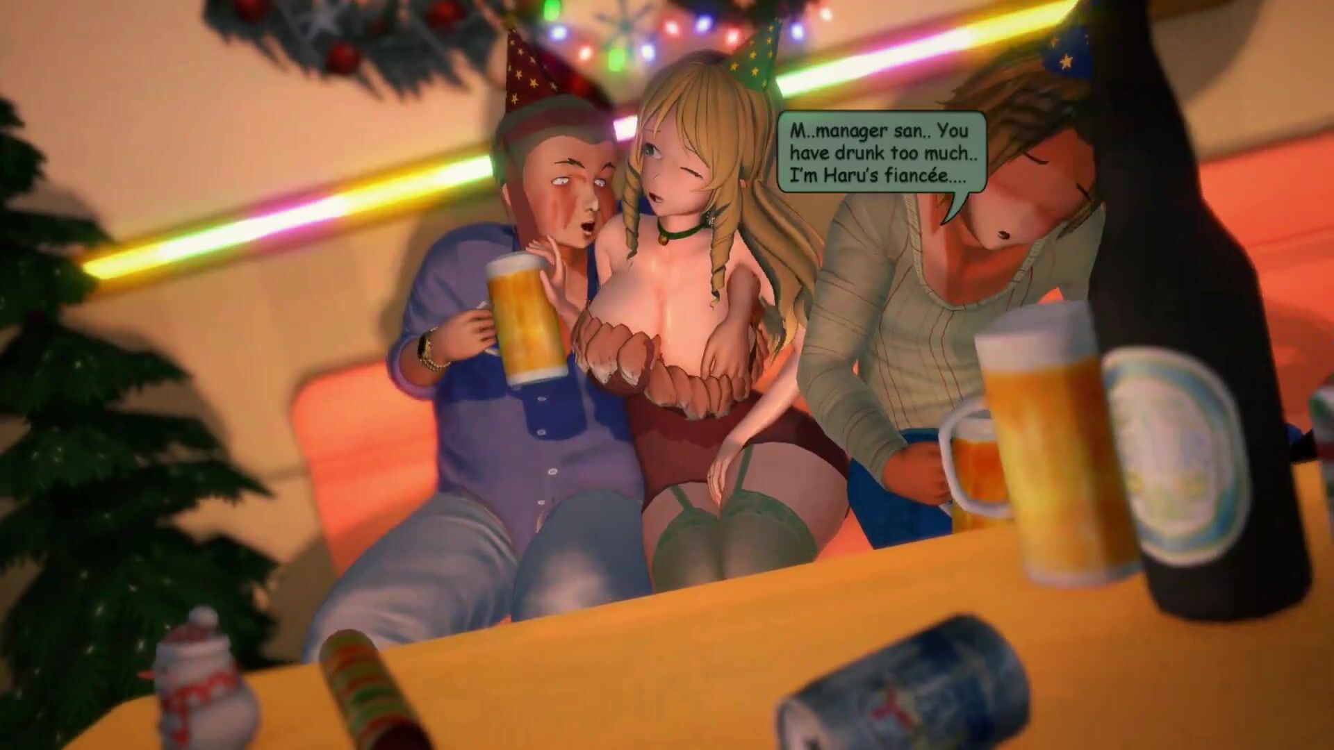 Mely's fiancé is giving her happy blessings in the form of a gift from his boss, a colleague. The scene includes a hentai PORN video description where Mely is receiving oral sex from her fiancé's boss, while he watches. There are 31 videos on Patreon, including this one, created by Delirium Bear. More contents on Pixiv can be found through the link provided.