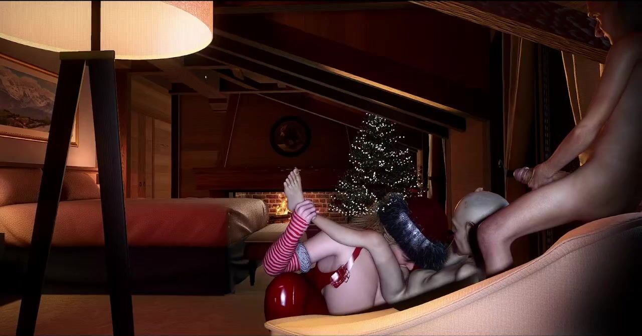 Mrs. Claus is bored and horny at home while Santa is out giving Gifts to good chil*dren. Mrs. Claus has a naughty idea, she thought of having fun with their two hard working Elves by getting all her holes fucked!