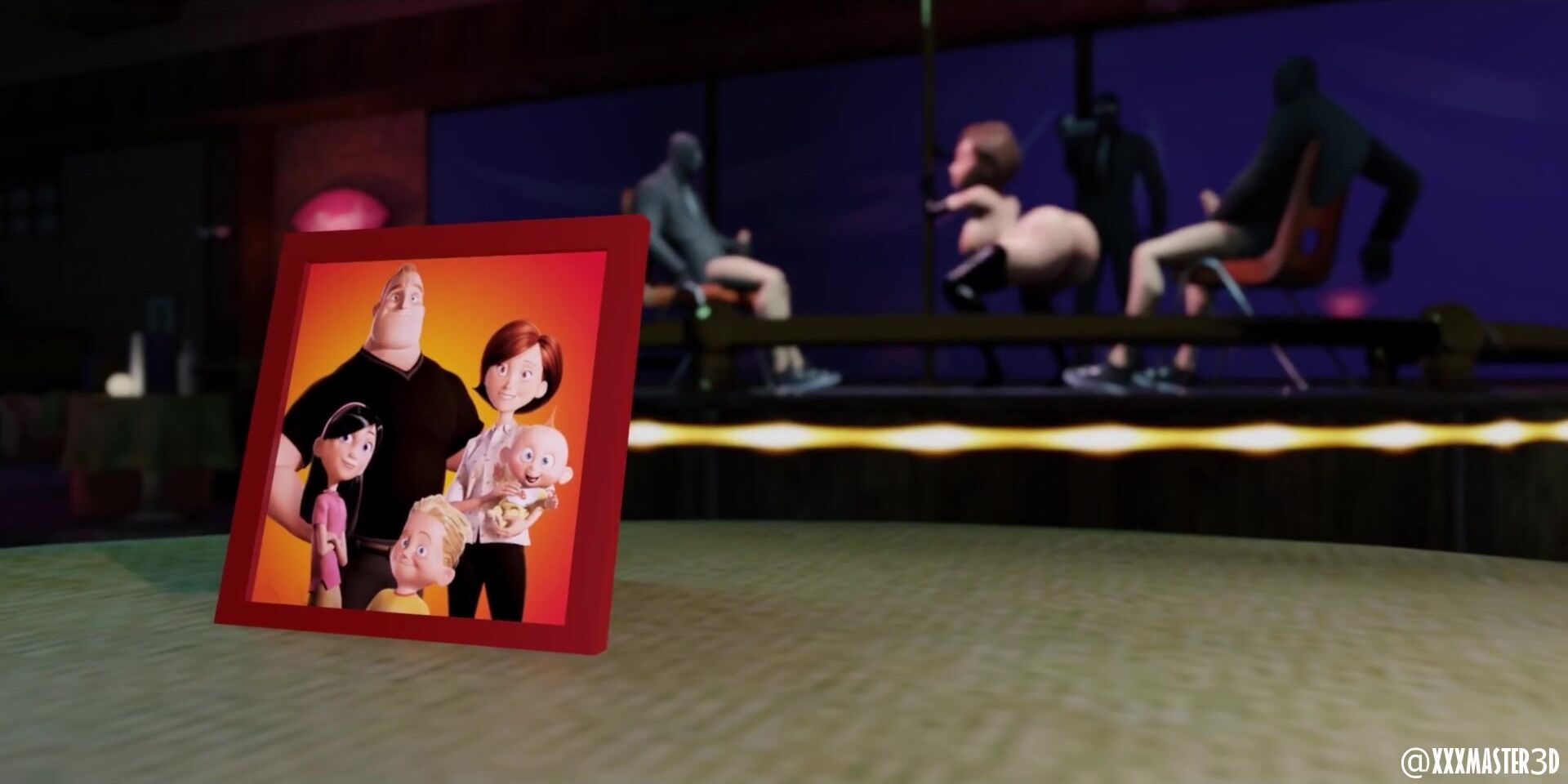 'Mrs Incredible does a naughty dance in her lingerie at the Erotic Boutique! '