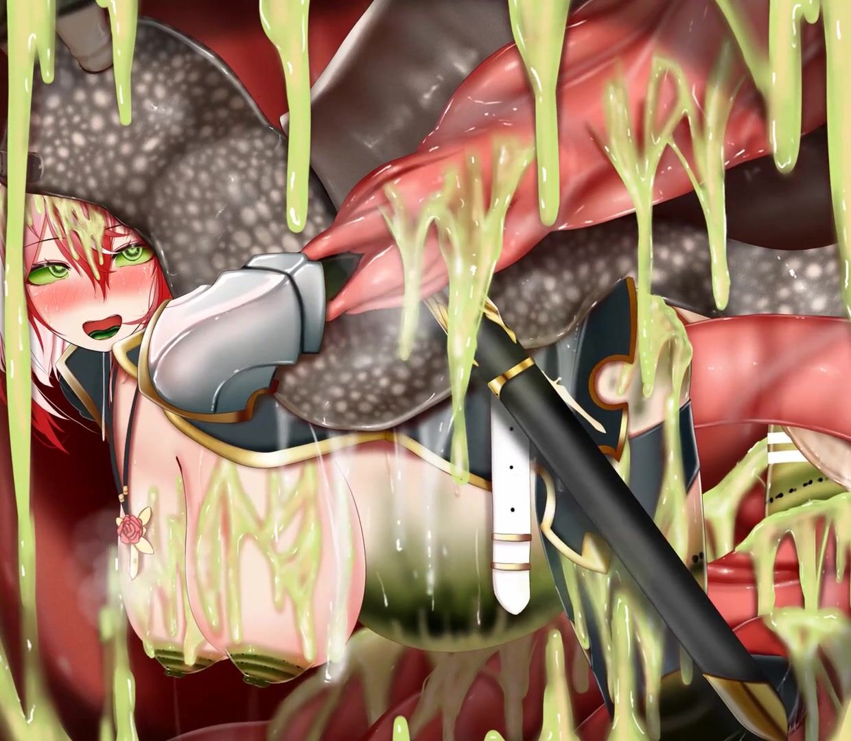 Watch as the sexy demon slayer fights off a horde of horny demons with her magical...
