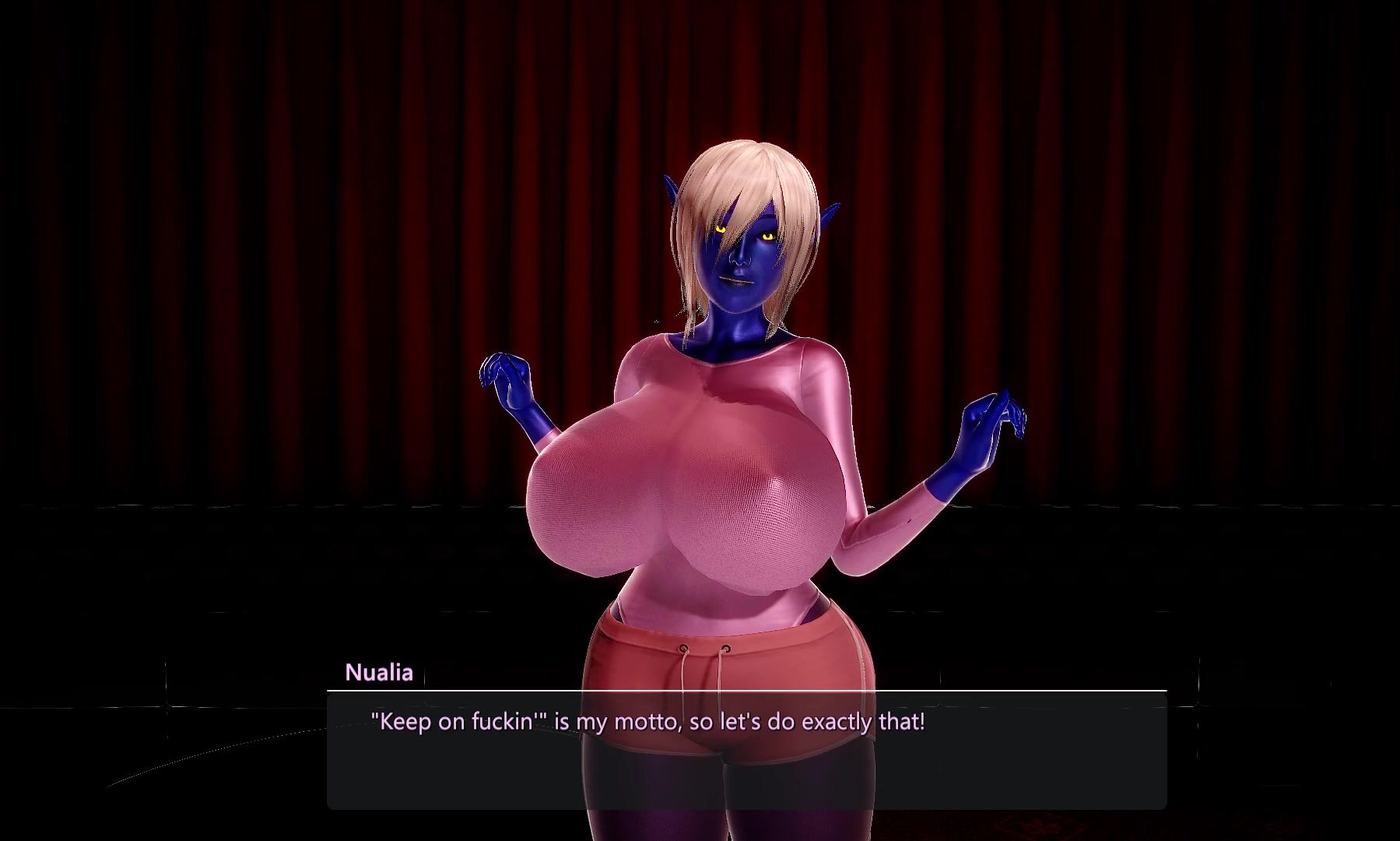 This video description testifies to the attempt of a VIP room user named Nualia, who is trying out a new mod on her body, giving it an updated form and dressing her up in some new clothes. However, there are still some bugs that need to be worked out before everything can function smoothly. If you're interested, please visit the creator's Patreon page for more information.