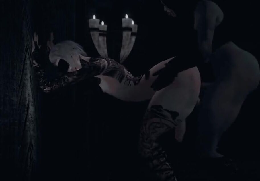 Orc Futa seeking to impregnate Nord Genderfluid through rough sex in the wilds