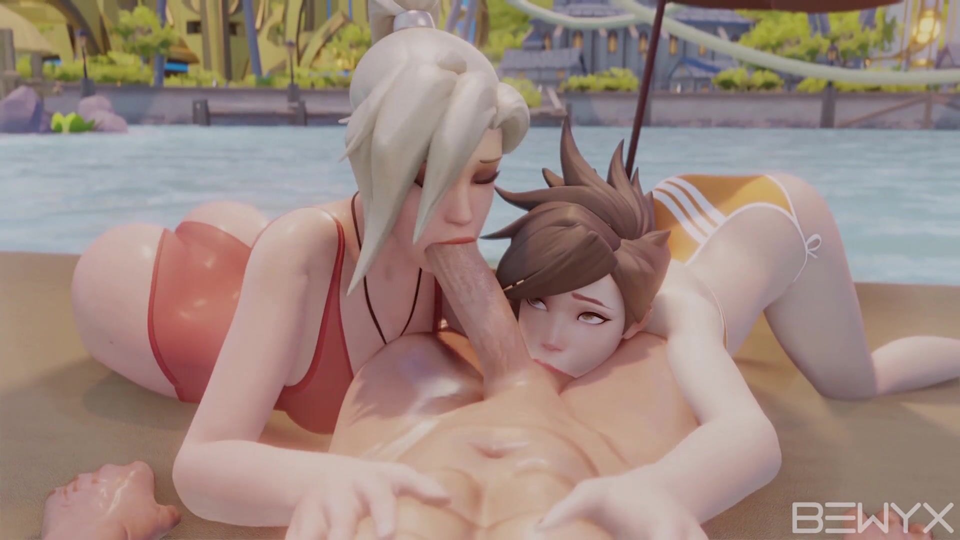 Overwatch Oral Delights: Mercy and Tracer Blowjob