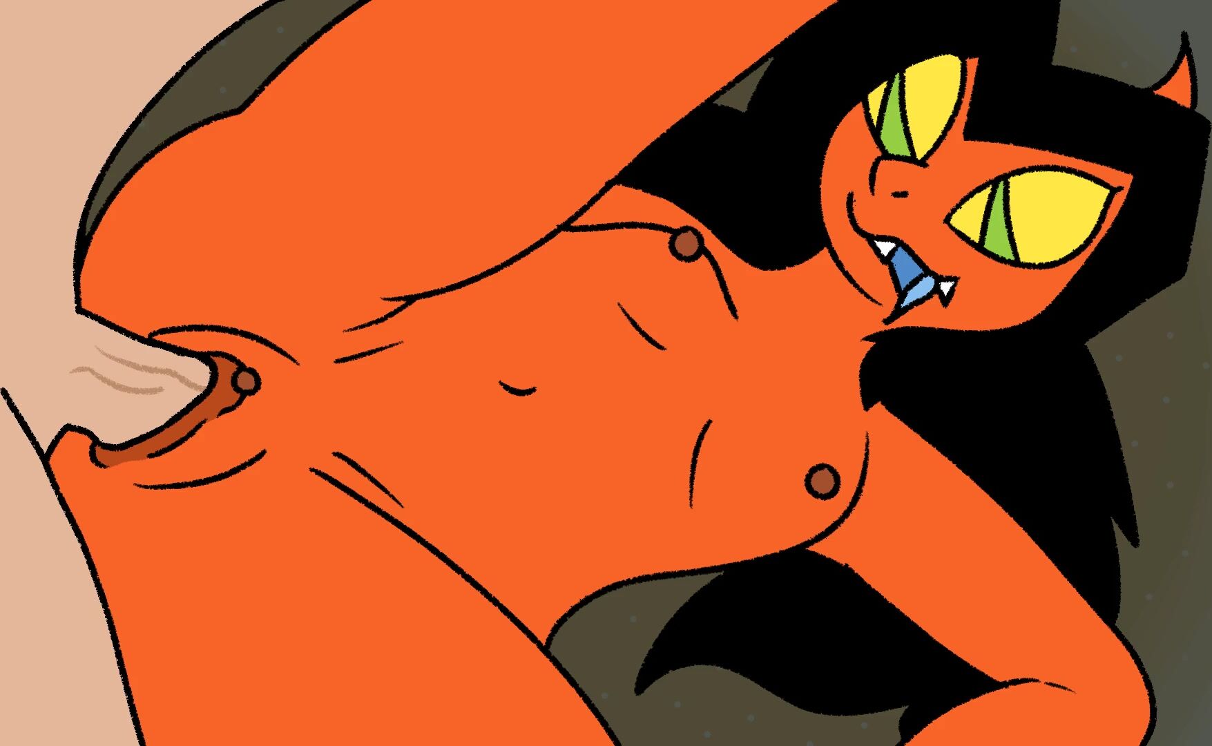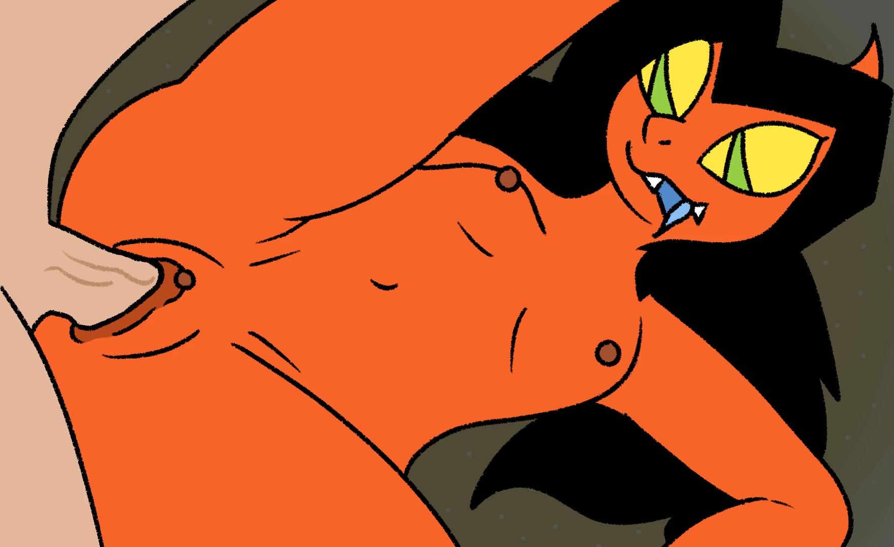 Horny Angel Dust lures in Fan Character Sharky with her seductive powers!