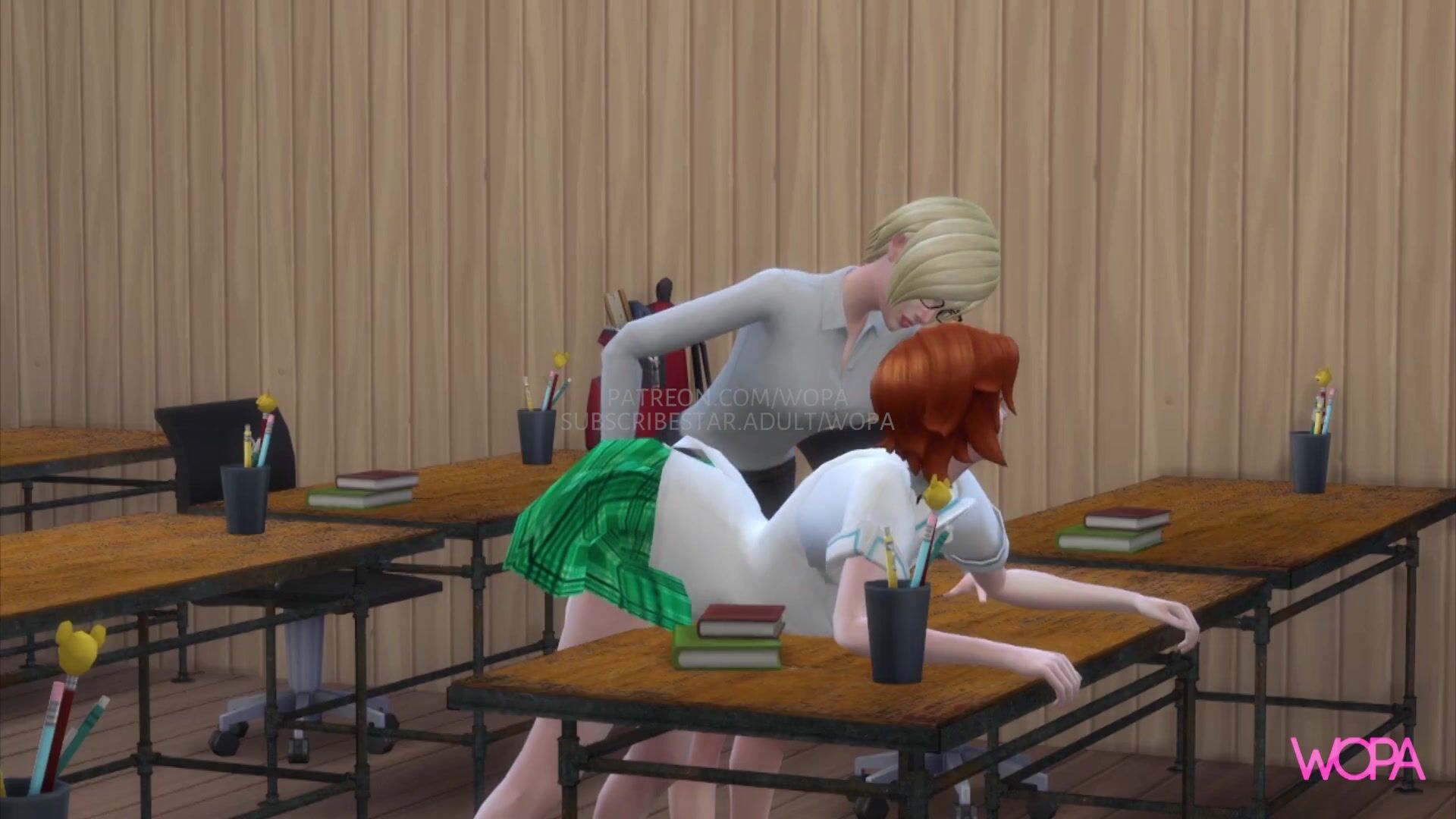Naughty blonde teacher rubbing herself with hot red-haired student