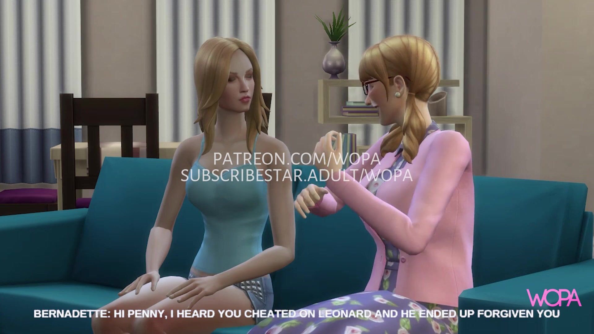 This hentai porn video description features Penny and Bernadette cheating on Leonard and Howard. The two women engage in a passionate lesbian encounter, pleasuring each other with their hands, mouths, and tongues. As they moan in ecstasy, the men watch helplessly from afar, unable to do anything about it.
