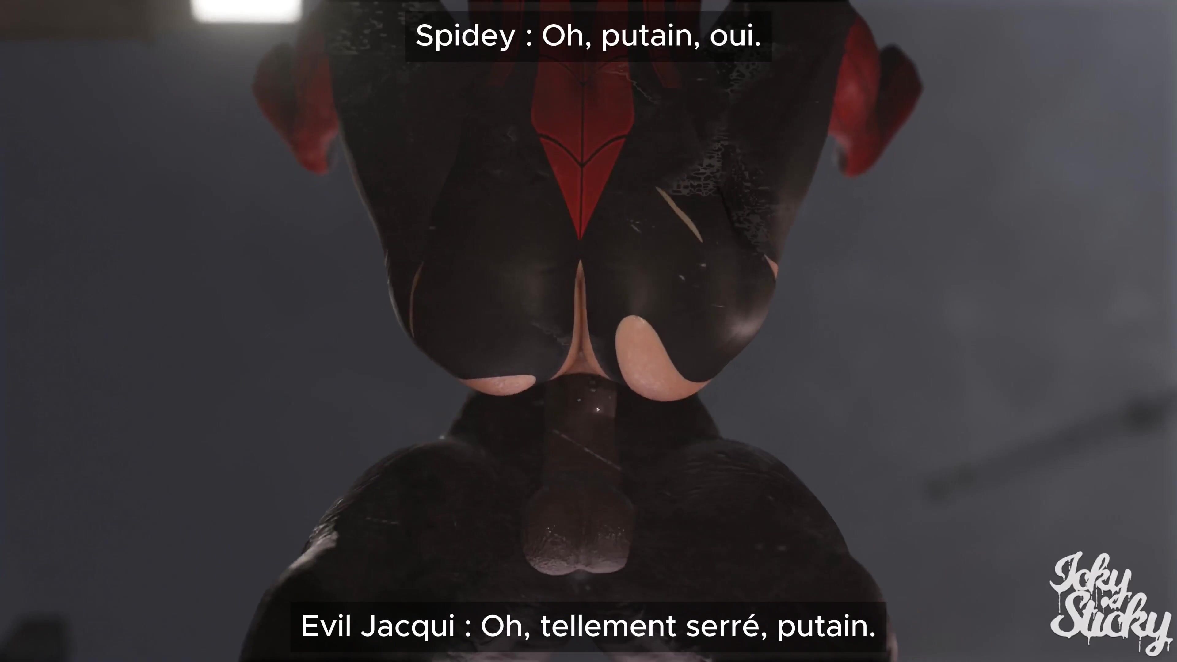 This hentai PORN video description includes a link to a Twitter page that contains the video. The video is titled "Spidey vs Evil Jacqui" and features sound design by 40Evilaudio, as well as voice work from 40SilkyMilkVoices and 40thevoicevixxen.
