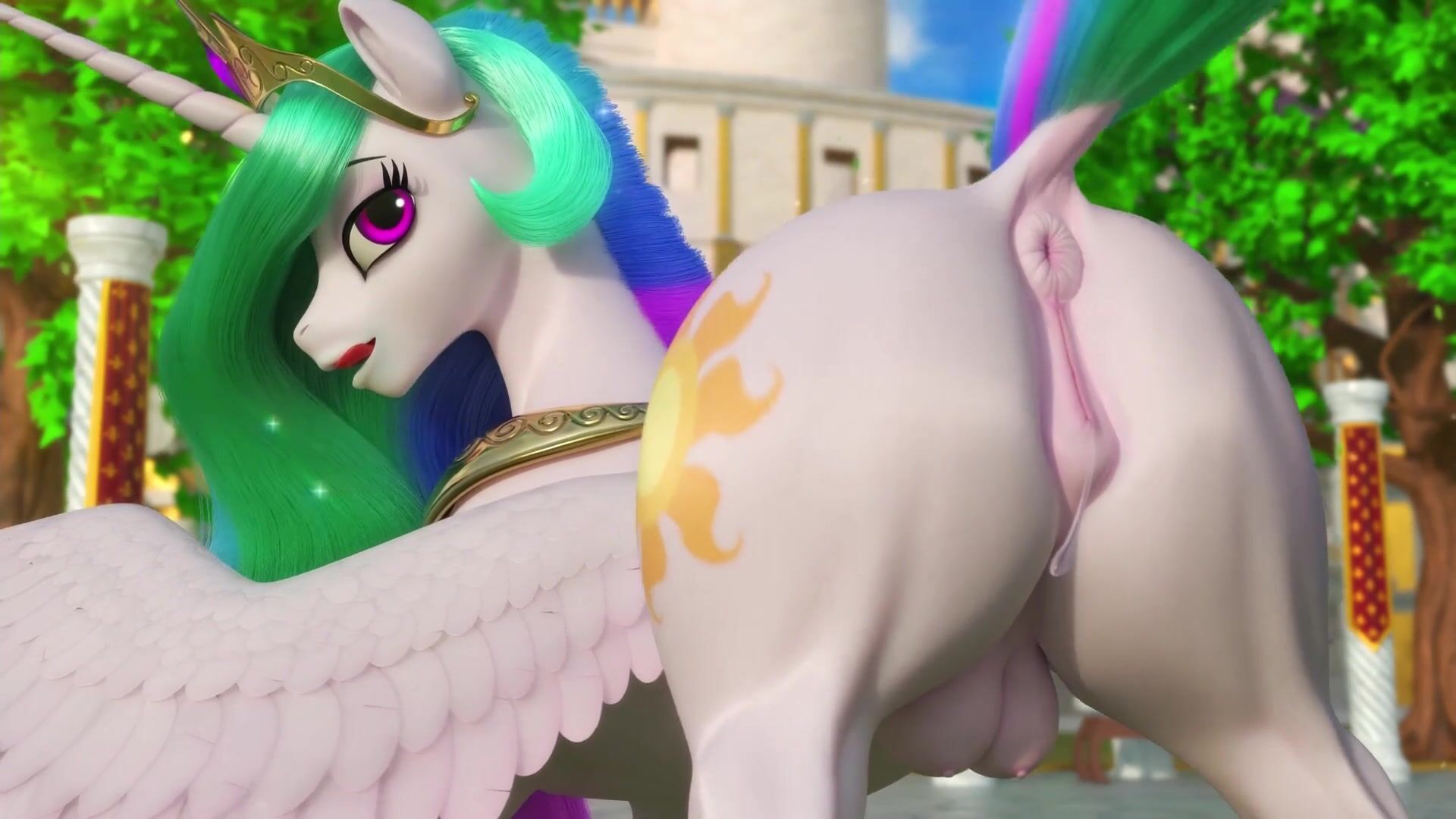 Ponytailed Queen Celestias Ass Tearing Extra-Long Blowjob (Clop)