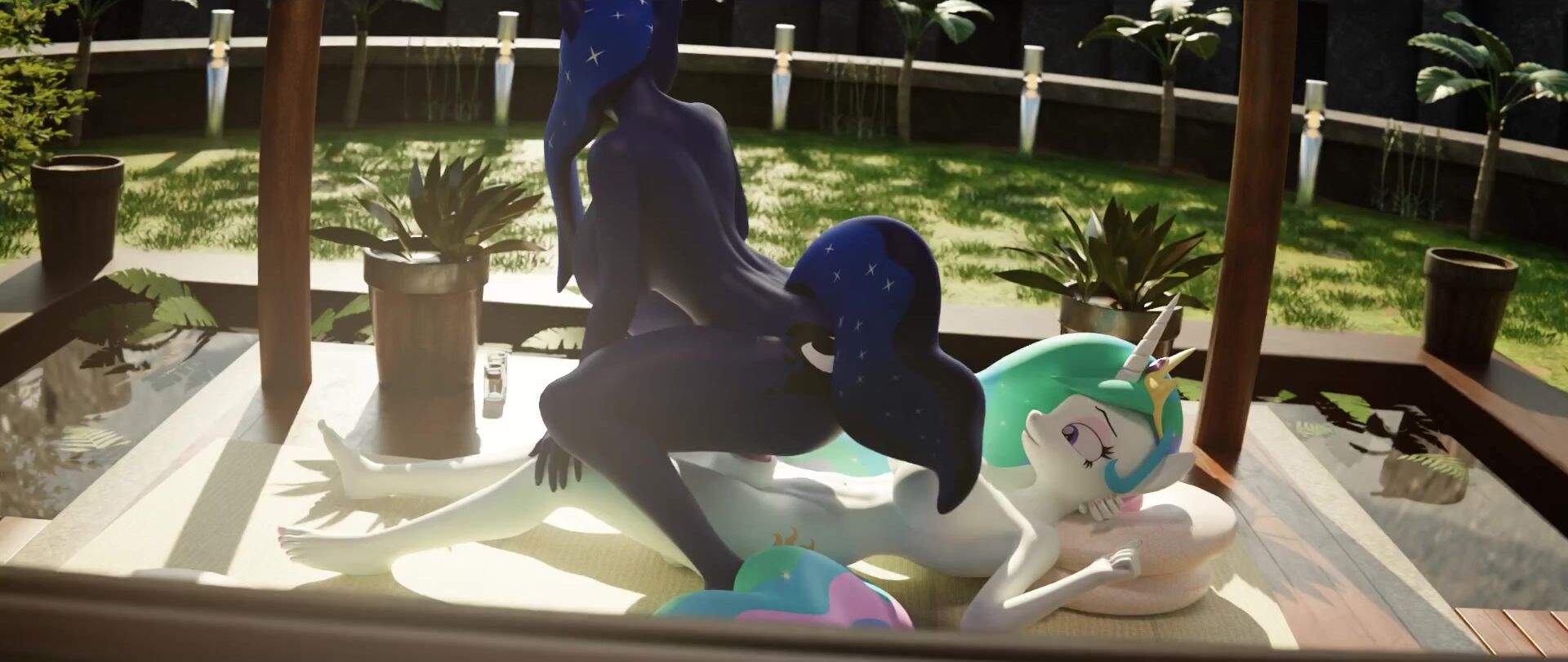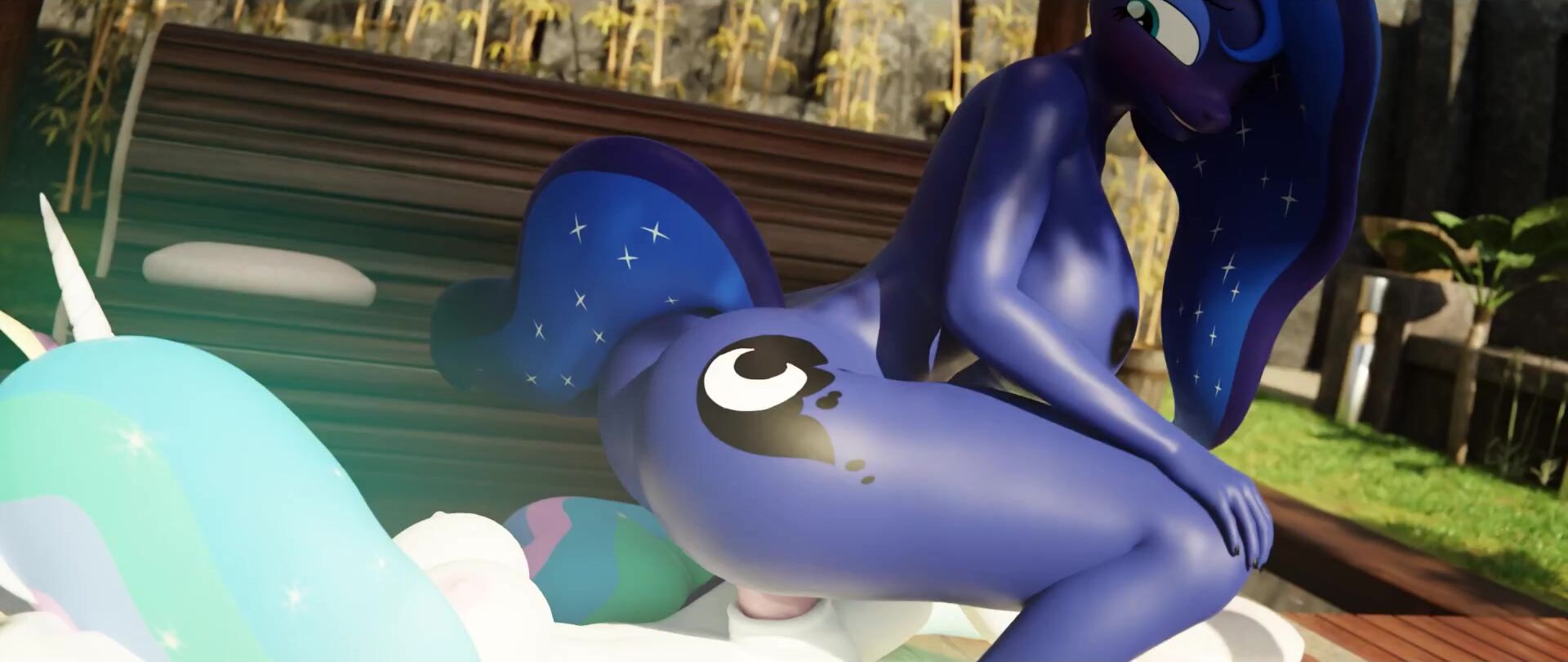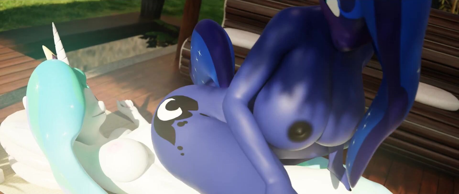 Rainbow Dash and Celestia have a steamy threesome with Luna, in their POV