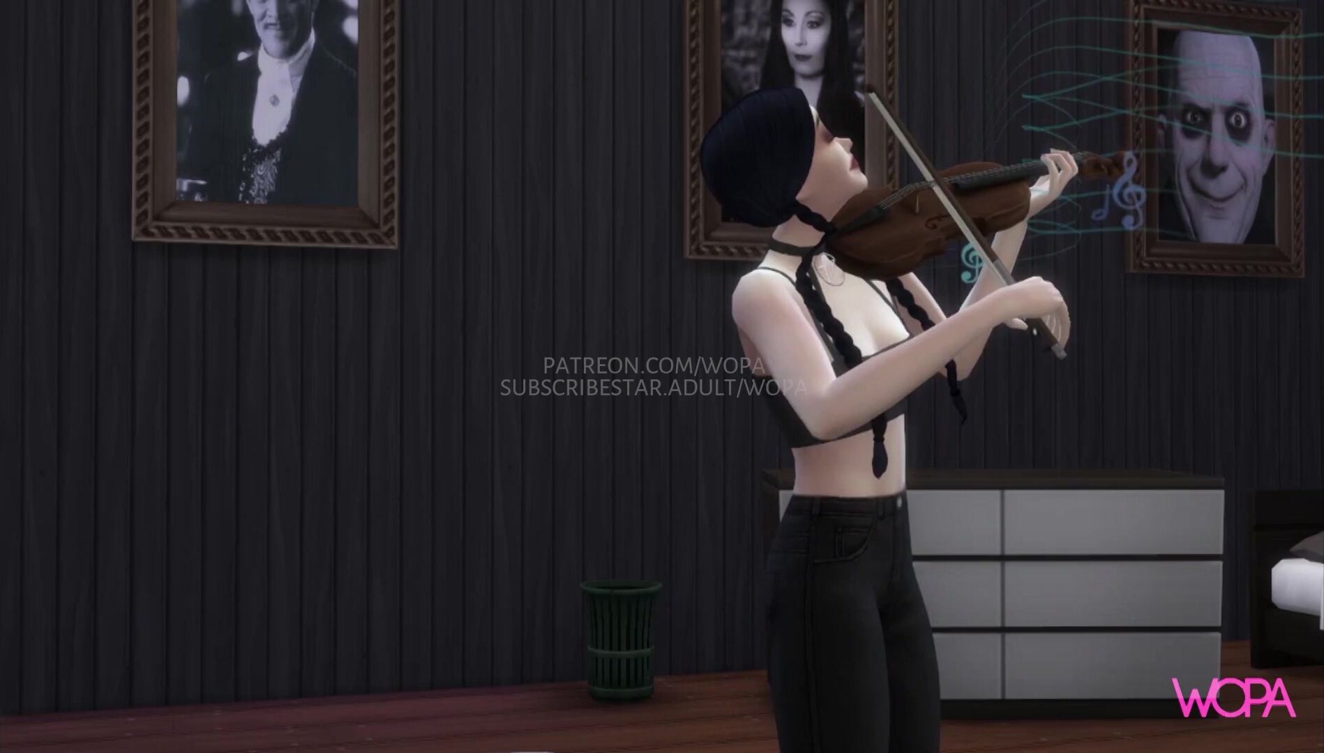 Wednesday Addams and Enid. Roommates licking and rubbing each other