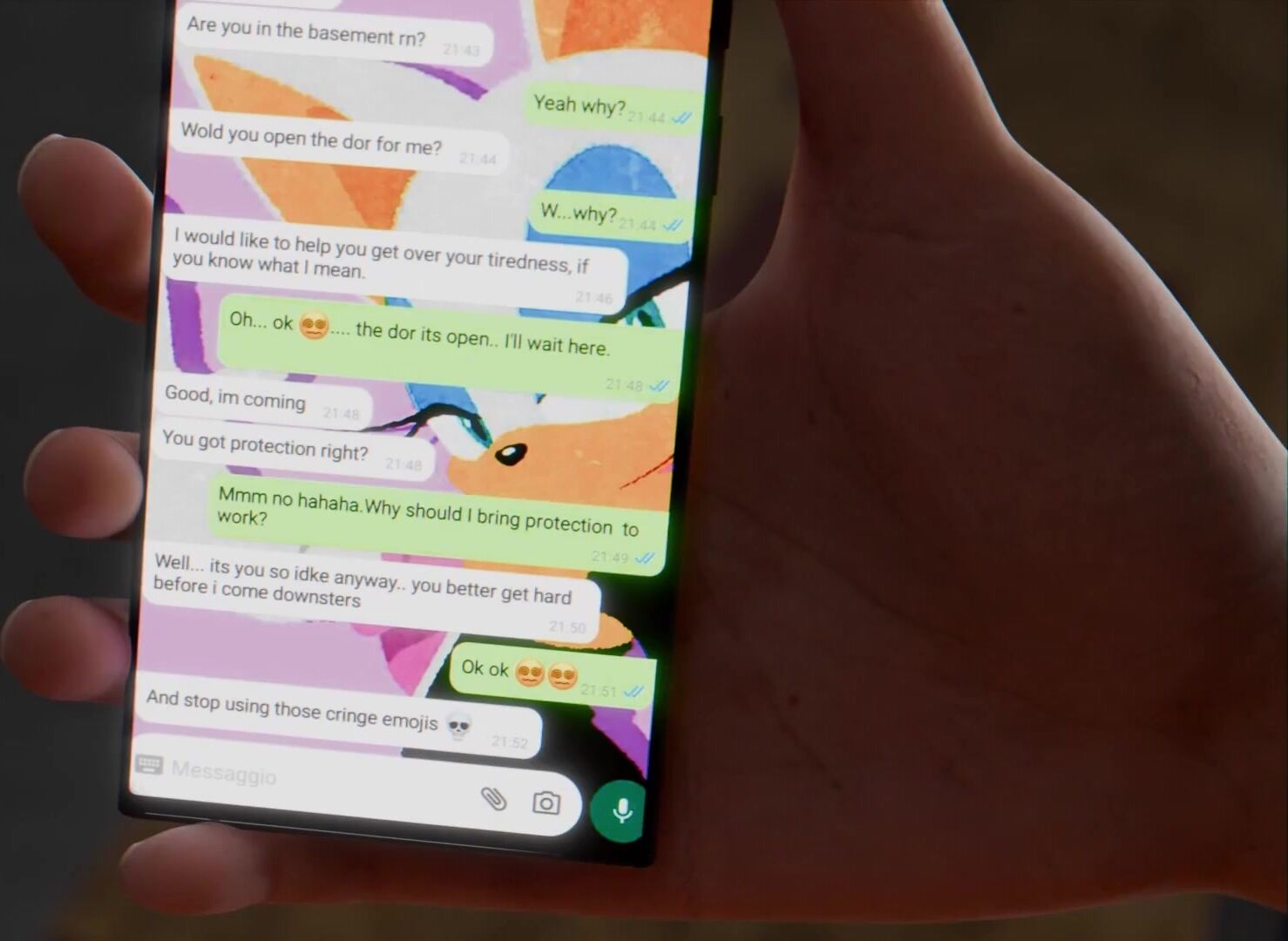 "Rebecca meeting a friend for sex at the office"