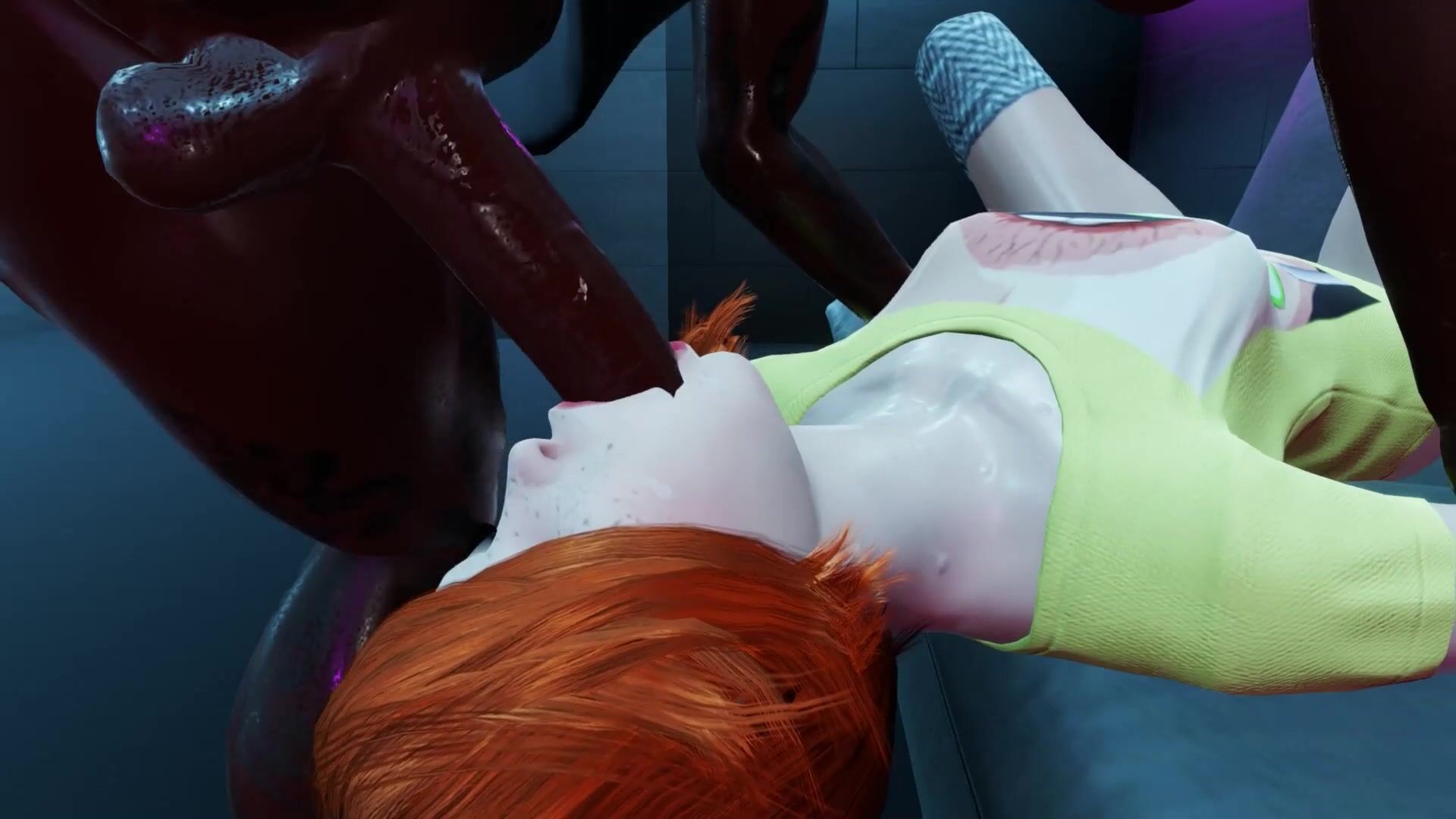 Petite redhead Aylina sucks the black dick of Alexis in a Gloryhole room