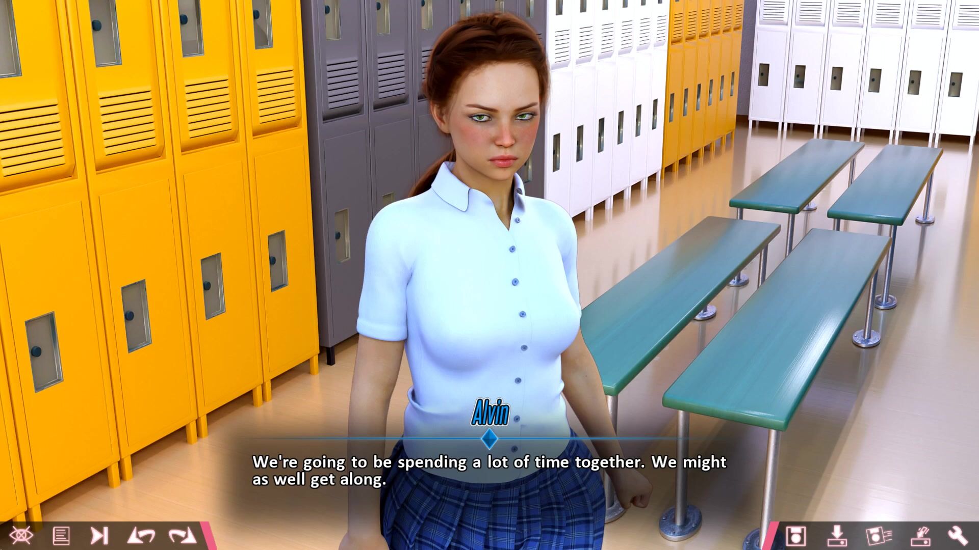 Alvin's first day at summer school ends with an embarrassing, yet somewhat titillating encounter with Rachel in the girls' locker room. Tamara also manages to disturb her brother in more ways than one at the same time. The next day, Alvin is surprised to learn that Ms. Walsh has actually been retained as their class instructor despite not really wanting to teach anybody anything - and as if that wasn't enough, Henry the School Idiot opens up a really nasty secret about Dennis, which clearly prompts for action but which action Alvin isn't really sure of... In this hentai PORN video description, Rephrases this detailed playthrough of Double Homework episode 19: Palmer Love Joint.