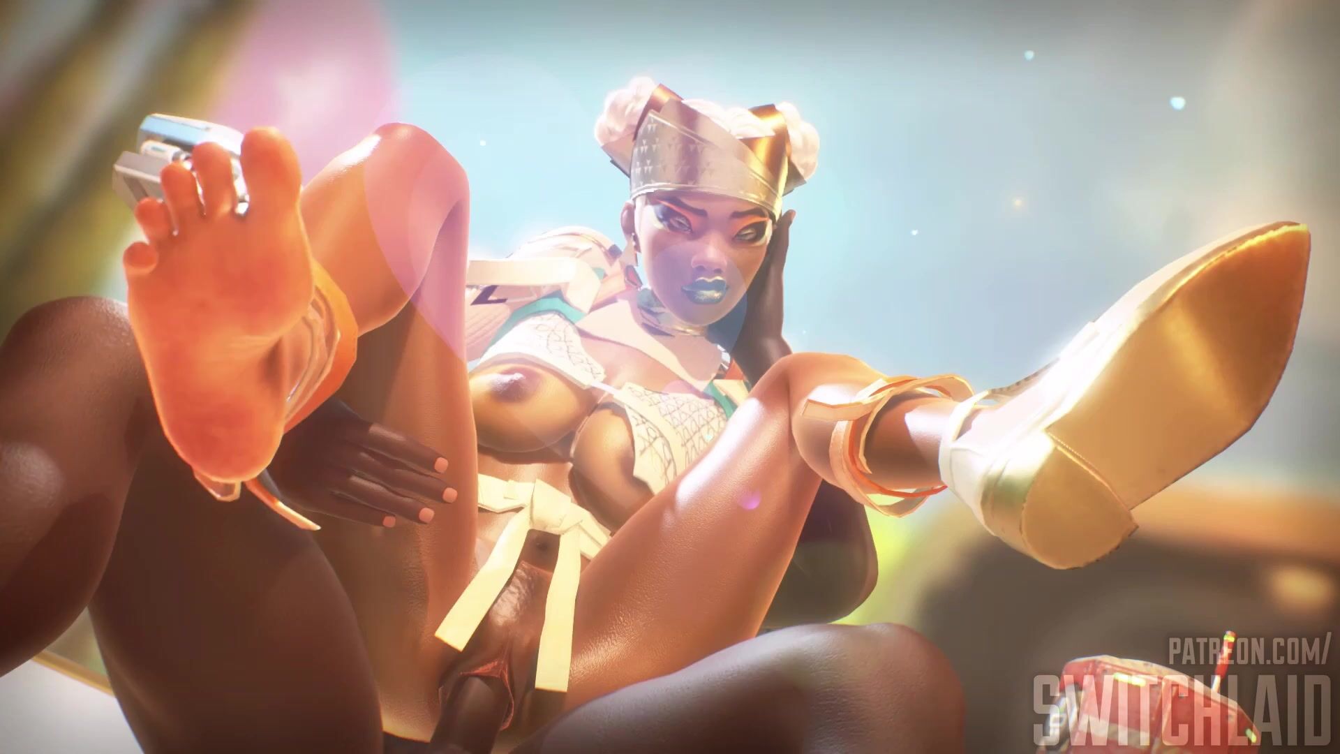 This is a description of Apex Legends' Lifeline character being forcefully restrained while her feet dangle in the air.