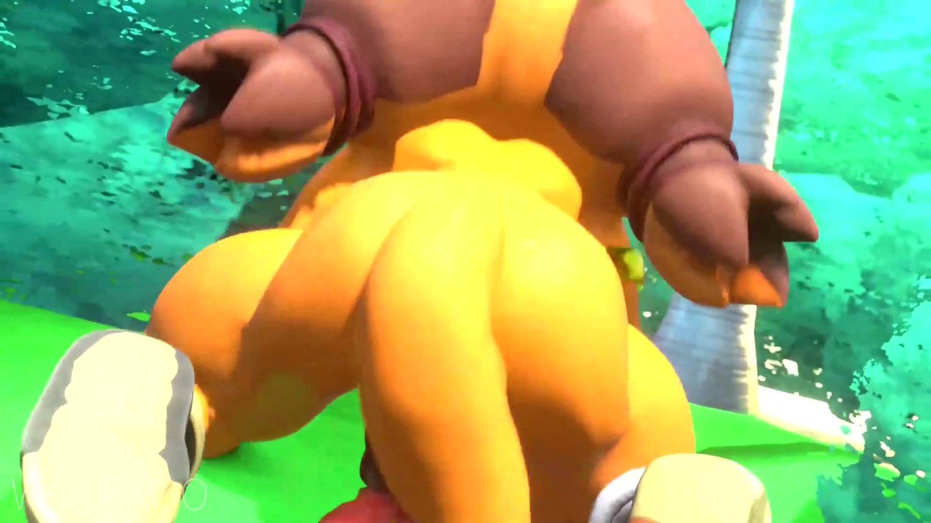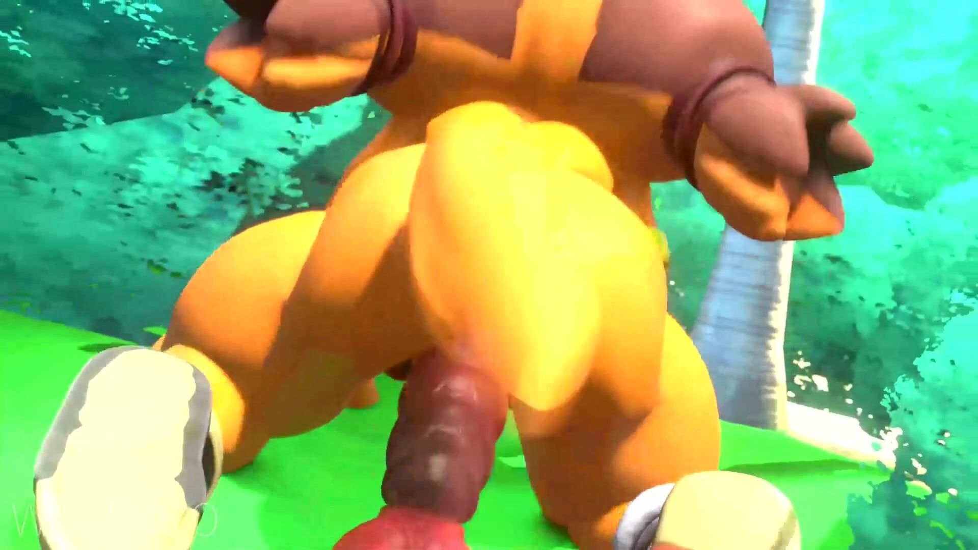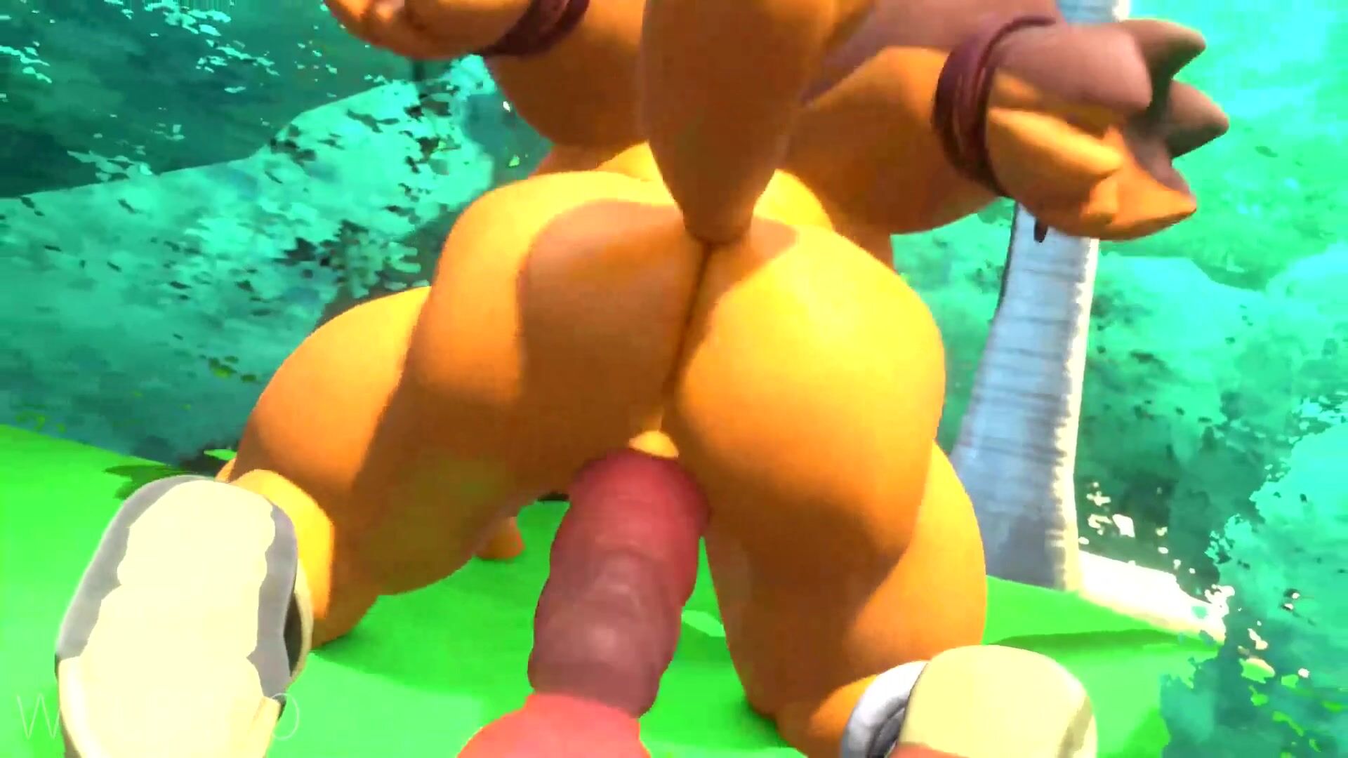 Rewritten: 'Sexy woman rides a phallic-shaped stick with an animalistic wolfman, all while moaning in pleasure!'