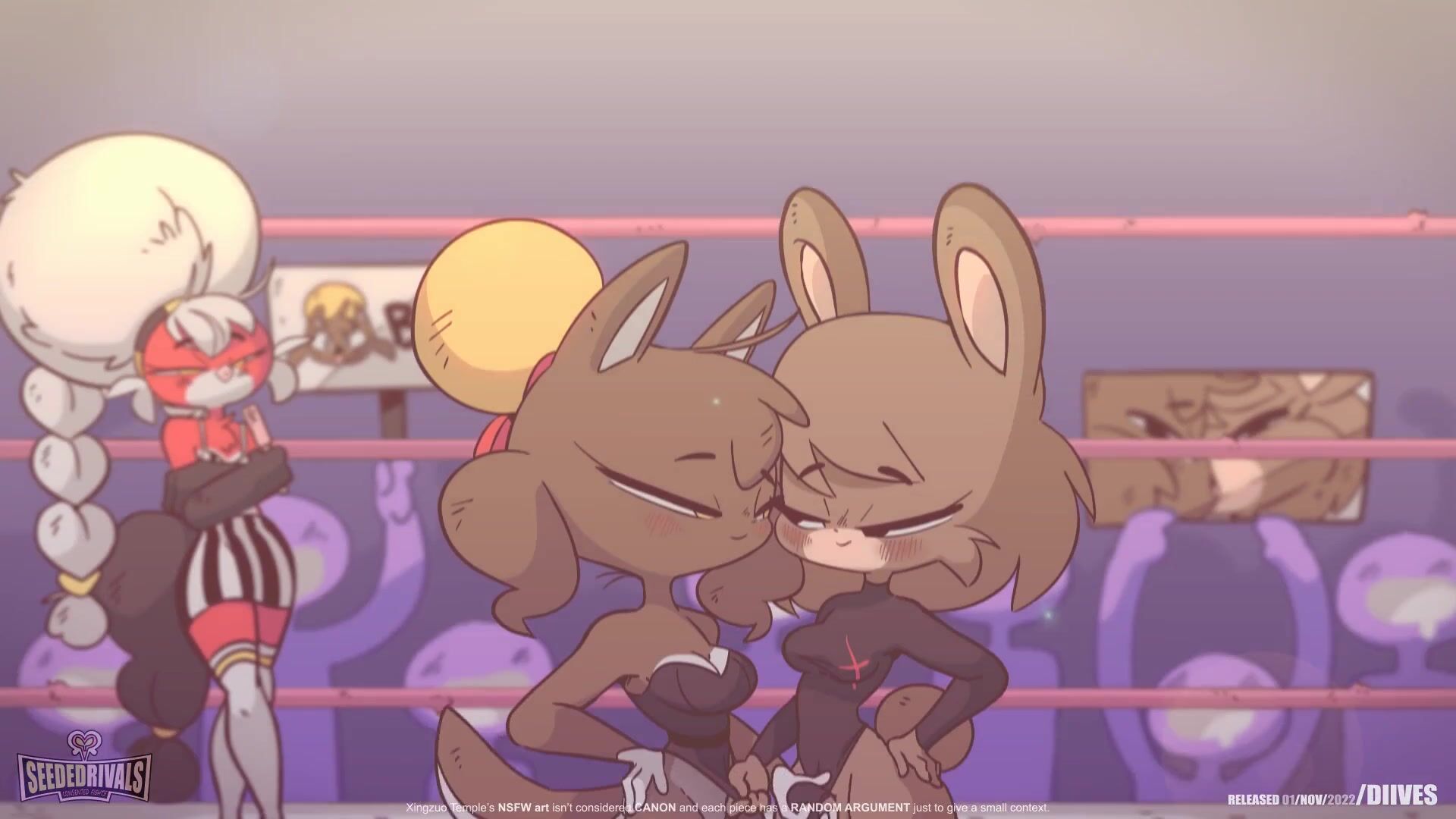 This hentai PORN video description has been rephrased. Two wrestlers engage in a long and intense battle that has finally been released to the public. They will stop at nothing to win this fight, using their dirtiest tricks to dominate each other. Kuma's owner, Baozi, and Miss Moonified from Oolay Tiger join the fray in a threesome, adding to the dirty action. Silky Milk Voices provide the sound design while Volkor NSFW provides the music. Additional animations by Oopsy NSFW add to the intensity of the match.