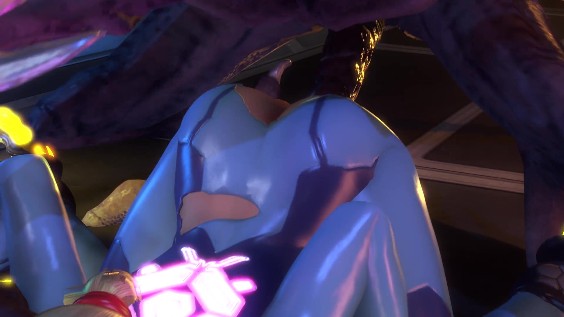 Demon-slaying bounty hunters Mona and Samus get it on with a horse cock