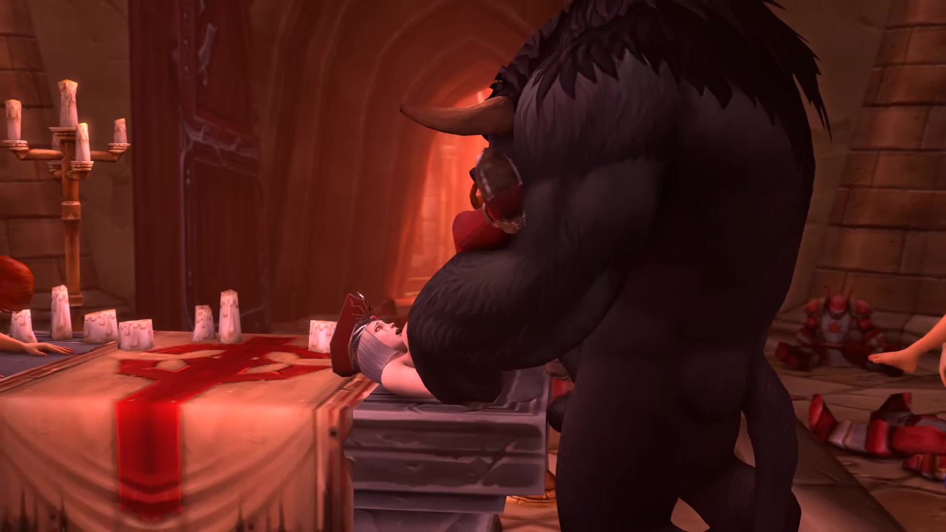 As the sounds of battle grew louder in the distance, Sally knew that the invading Horde party would reach the cathedral soon. She had wondered if this day would ever come, and whether the fantasy she'd kept to herself all these years would actually come true. It started with a dream she had years ago, where she experienced a tauren for the first time. Shocked with how aroused she was when she woke up, she began trying to make sense of it. She believed it had to be a test from the Light itself. Was her will strong enough to resist such a temptation? She blushed to herself and bit her lip as she started fantasizing about that tauren entering the cathedral right then and there, and taking her... Full version with extra angles available on Patreon: www.patreon.com/lawnmower333