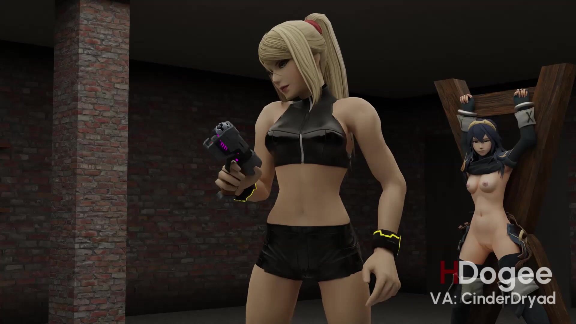 Samus and Lucina engage in a BDSM scene with Hdogee directing the action