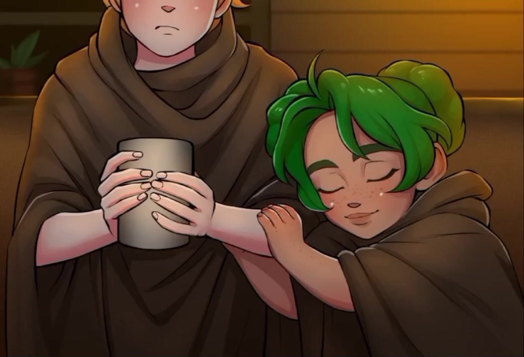 Amidst the dark sky, a rainbow shines brightly Two lovers find themselves lost in ...