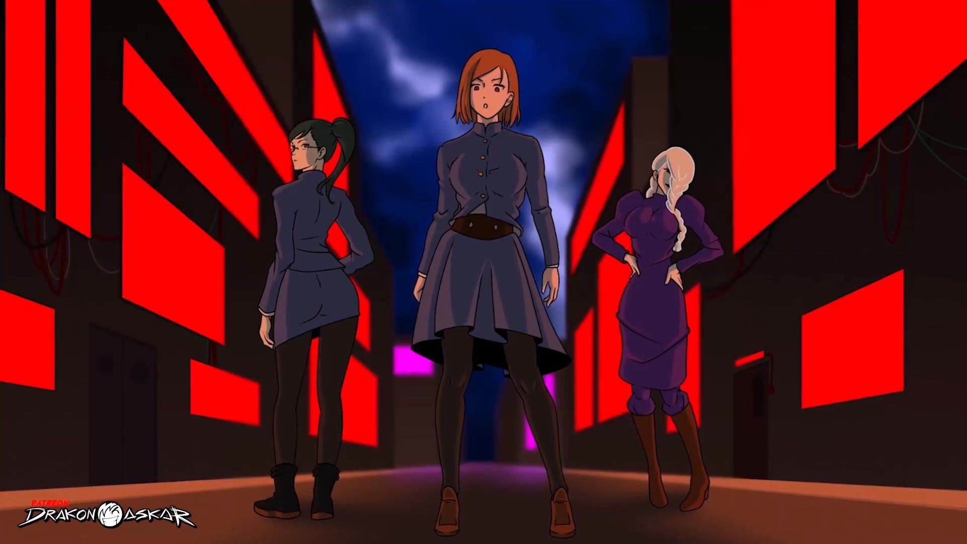 Watch as the sexy demon slayer fights off a horde of horny demons with her magical...