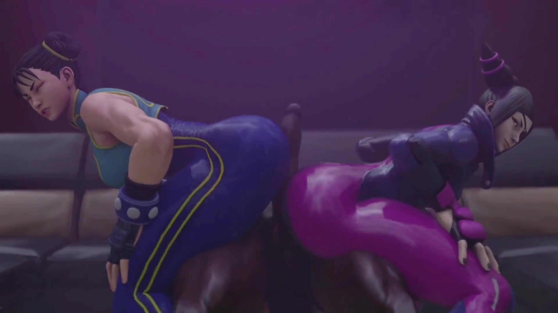 "Sexual Tension Between Street Fighter Rivals: Juri and Chun-Li Ends in Double Anal."