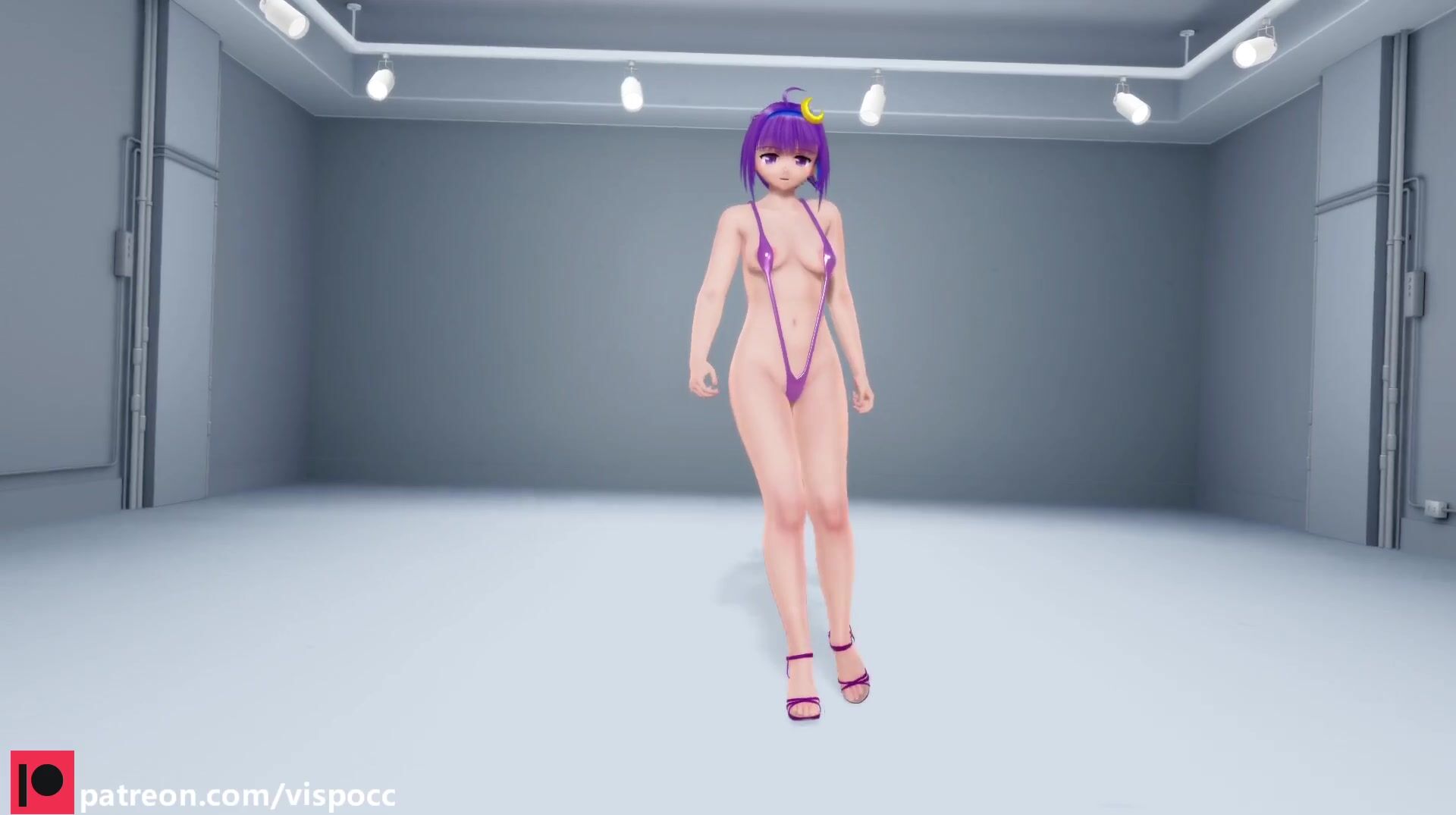 Sexy librarian Patchouli dances for her horny master Vispocc in this steamy hentai video