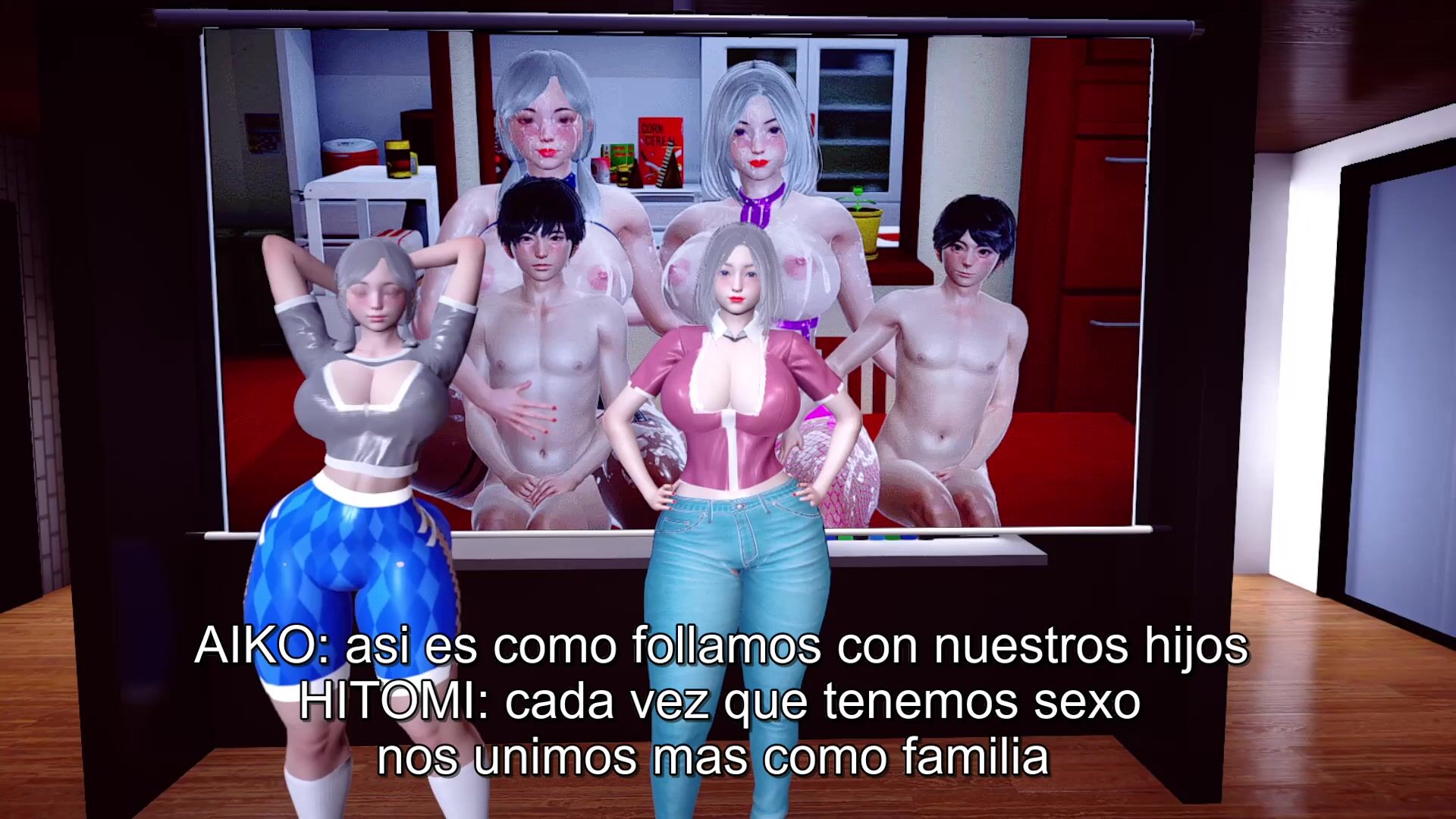 Sexy mamá y hermana juntas para un buen fin de semana en la casa de la playa con el novio y sus amigos.