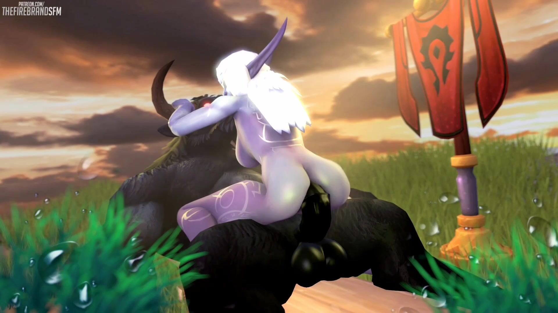 Sexy MILF gets gangbanged by Tauren males in the wild lands of Azeroth, and their massive cocks pound her wet pussy until she cums hard