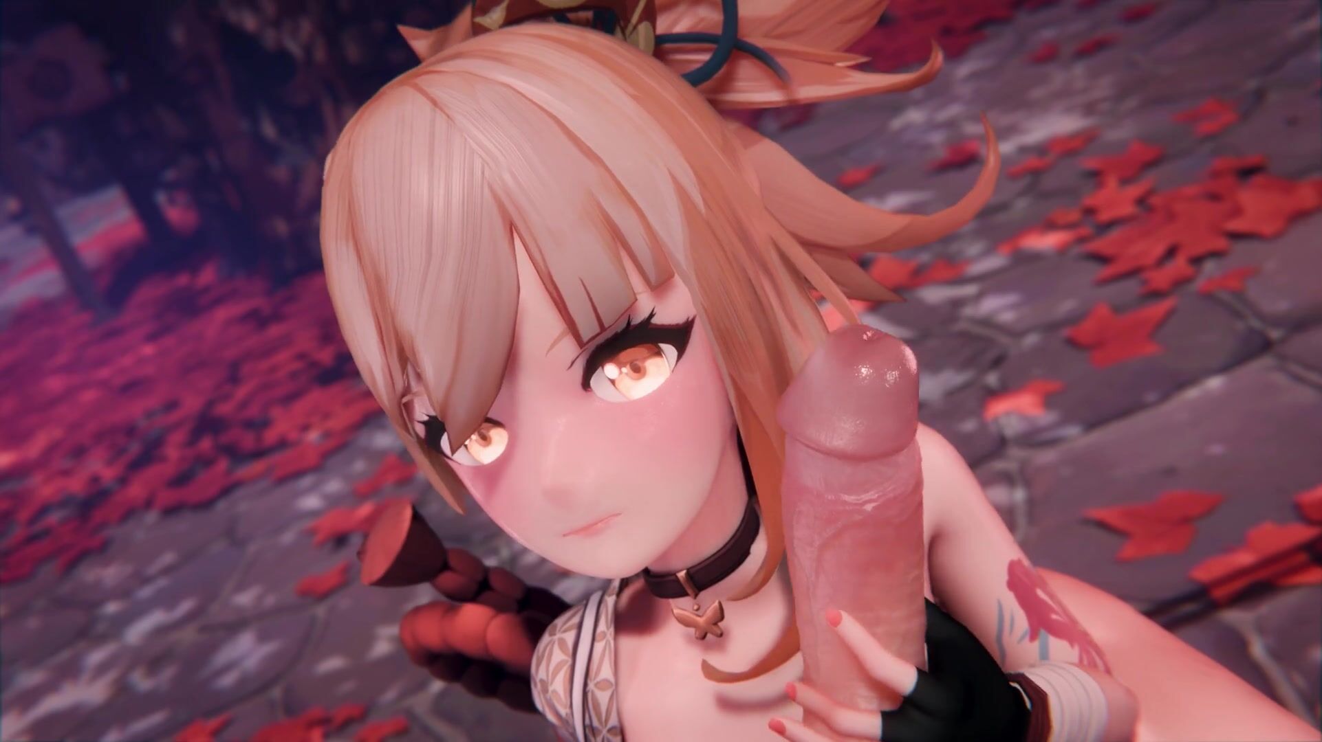 "[Sexy Momokos] Yoimiya Gives Lumine a Blowjob"