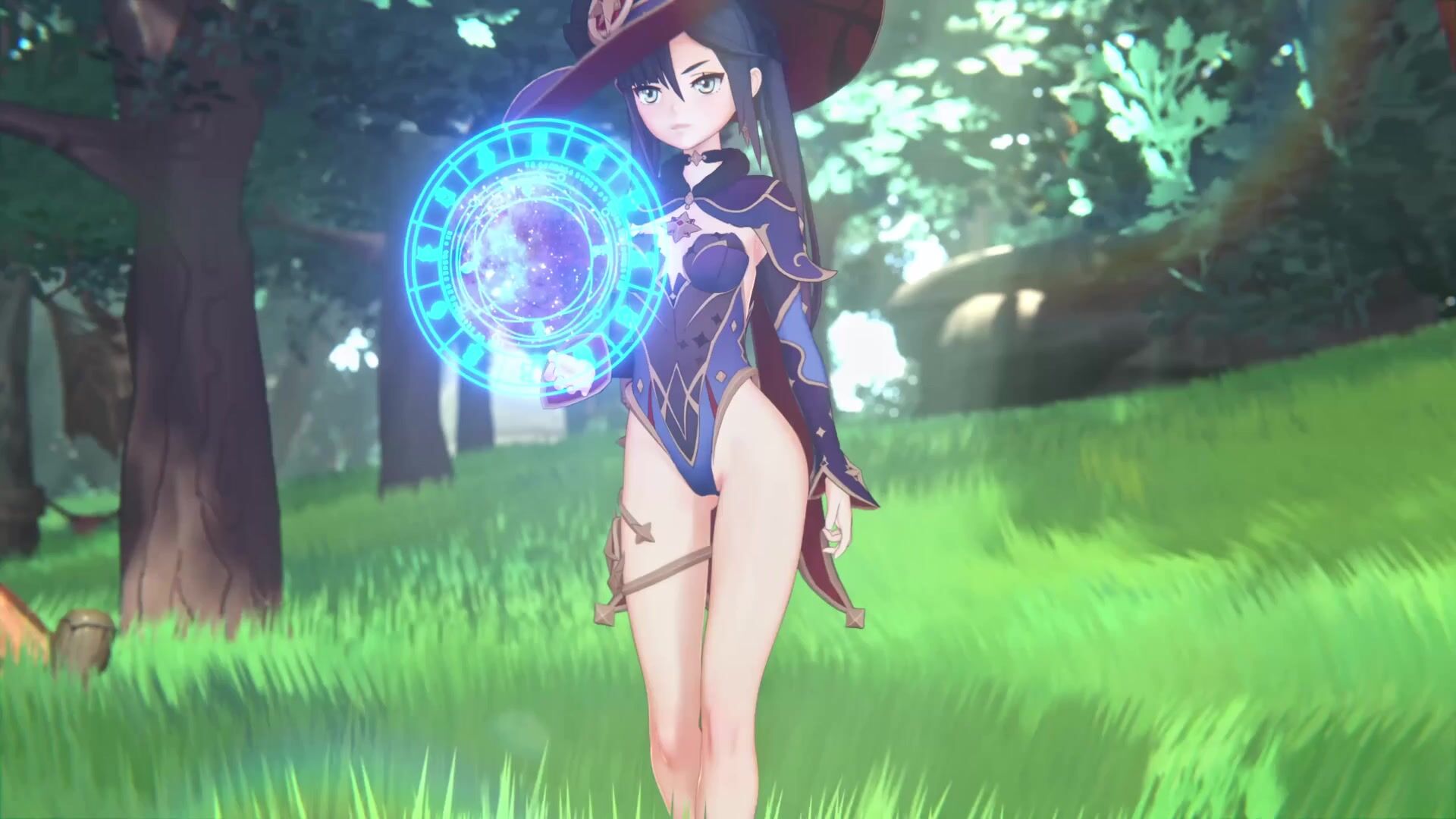 Sexy secretary Mona Hilichurl has a wild threesome with her boss and his assistant, alternating between sexy office outfits and lingerie.