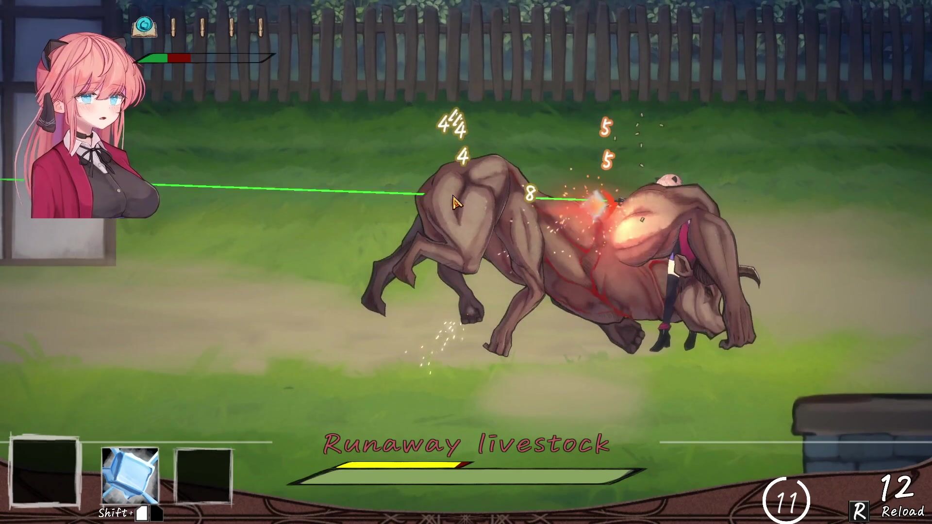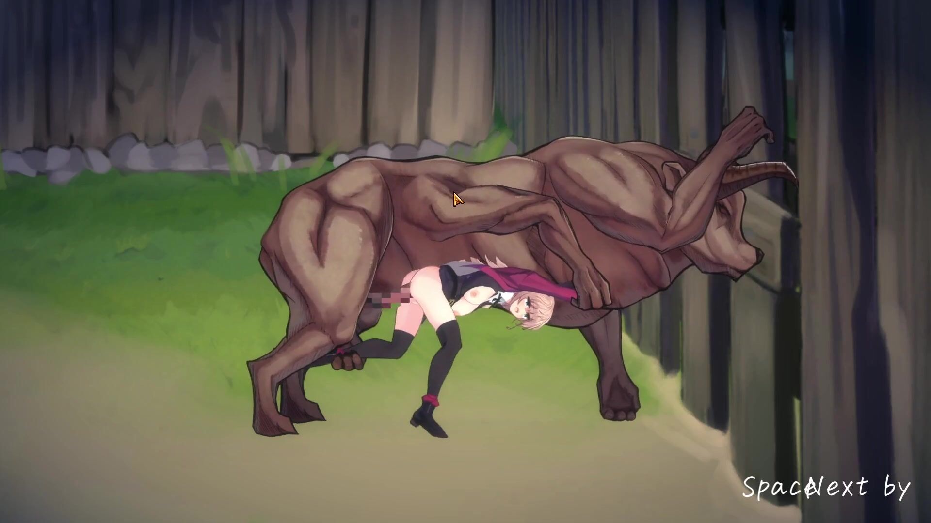 This hentai PORN video description seems to suggest that Vivi, the main character, has been impregnated by her own livestock. As a result, her belly is full and she's wasting away due to her pregnancy. The wording suggests that this is not a normal occurrence for livestock to attack their owner.