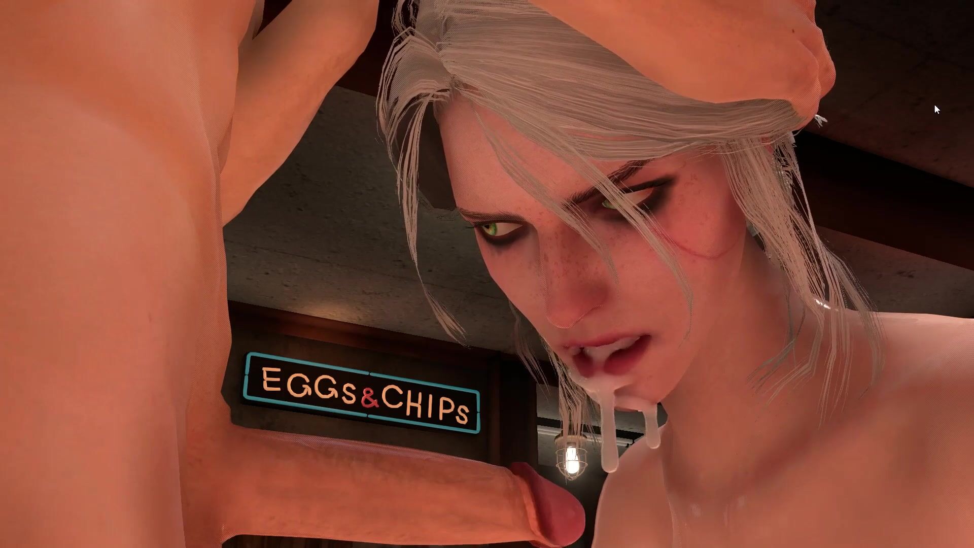 Siris mouth was stuffed with Toms cock while she sucked on it with all her might, moaning loudly and trying not to gag as he fucked her face