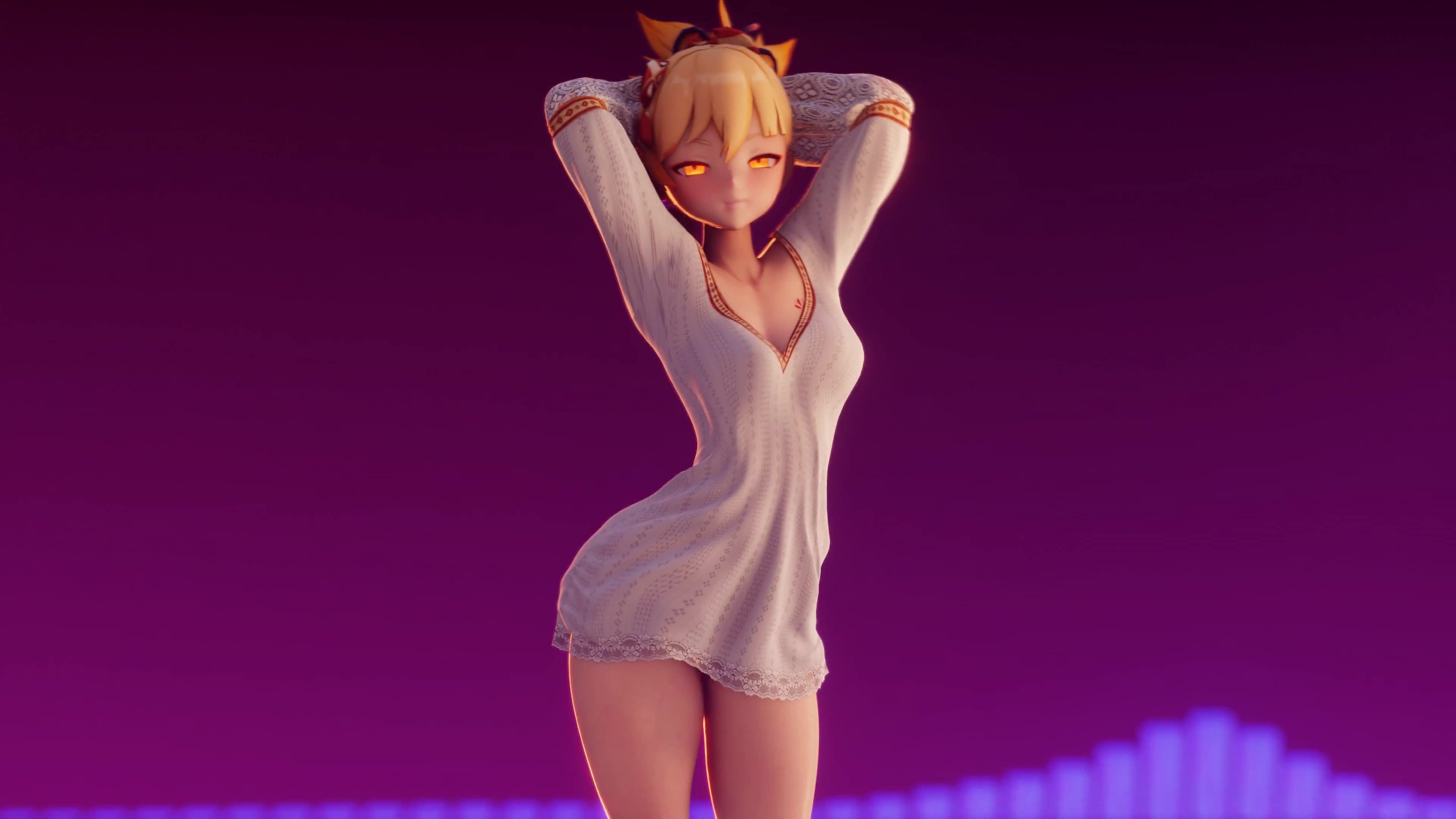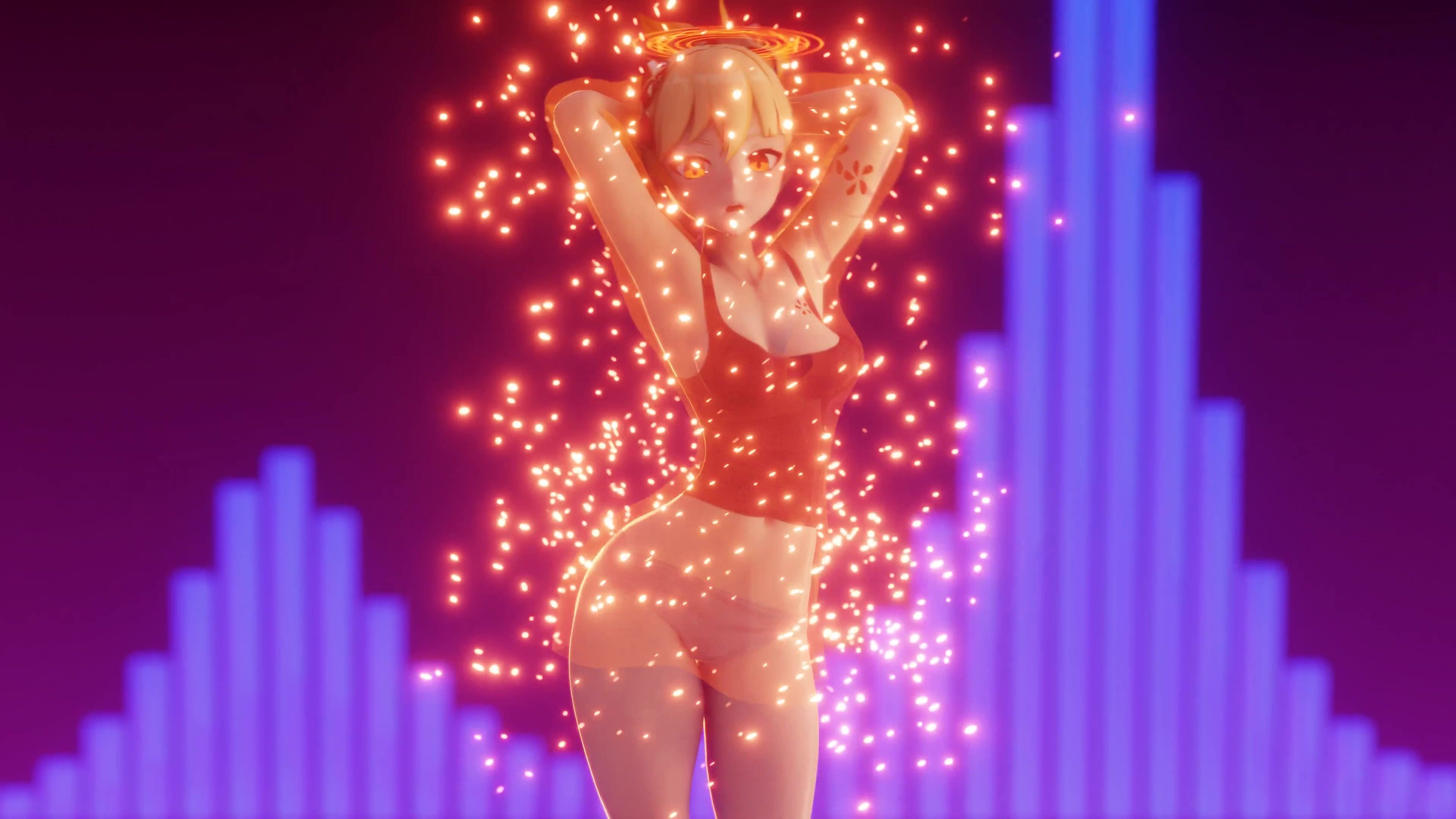 Watch as the sexy demon slayer fights off a horde of horny demons with her magical...