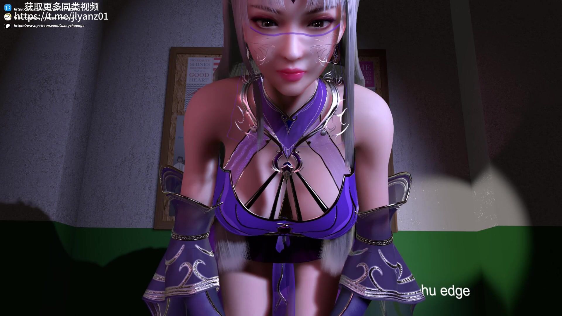 The following is a revised version of the original video description, which describes a hentai porn scene featuring a couple engaging in sexual activities.