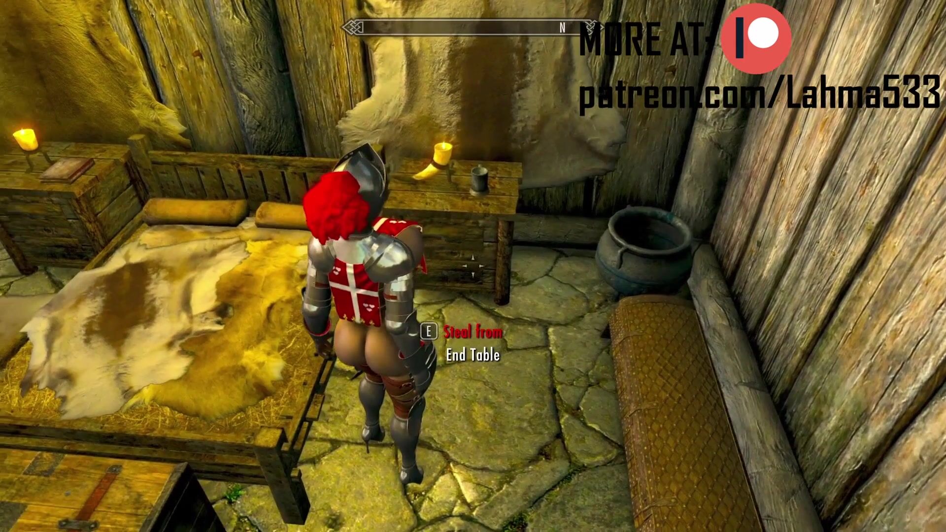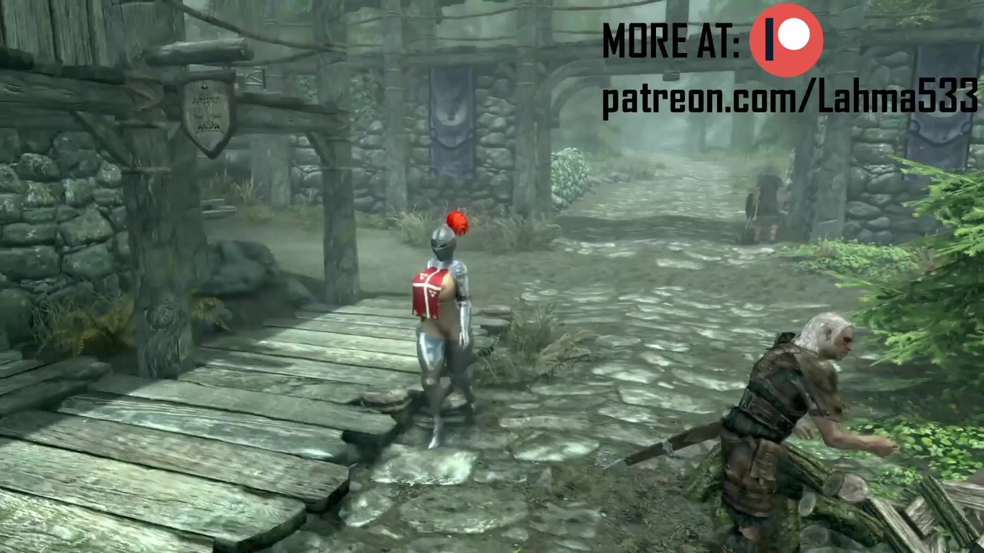 This description is about a pornographic video on Patreon, featuring extended scenes from Skyrim with bestiality themes. The content is unlocked for patrons who donate to the creator's page.