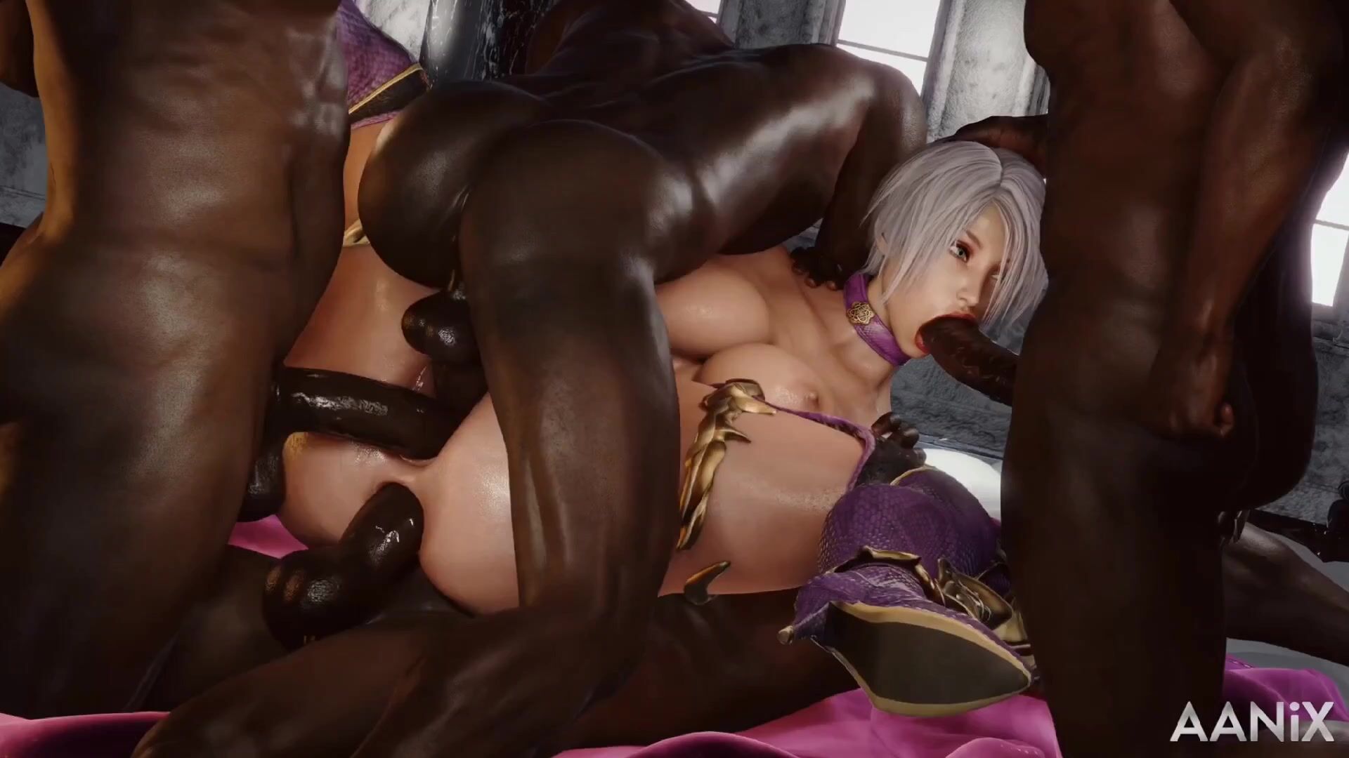 Description of the porn video: Ivy from the Soul Calibur game is having sex with three guys and sucking their dicks until she cums. Then, she takes a dick in her mouth and rides it like a pro. The whole scene is hot as hell!