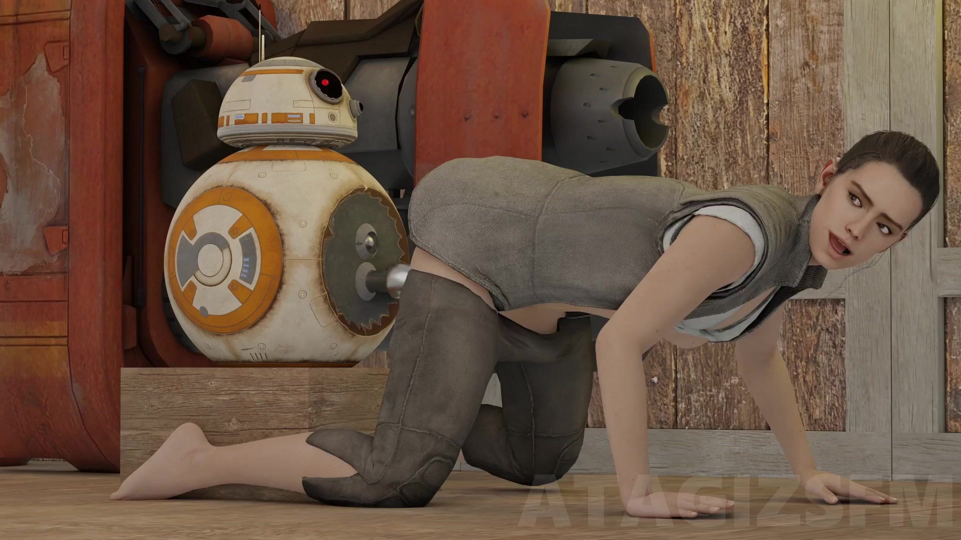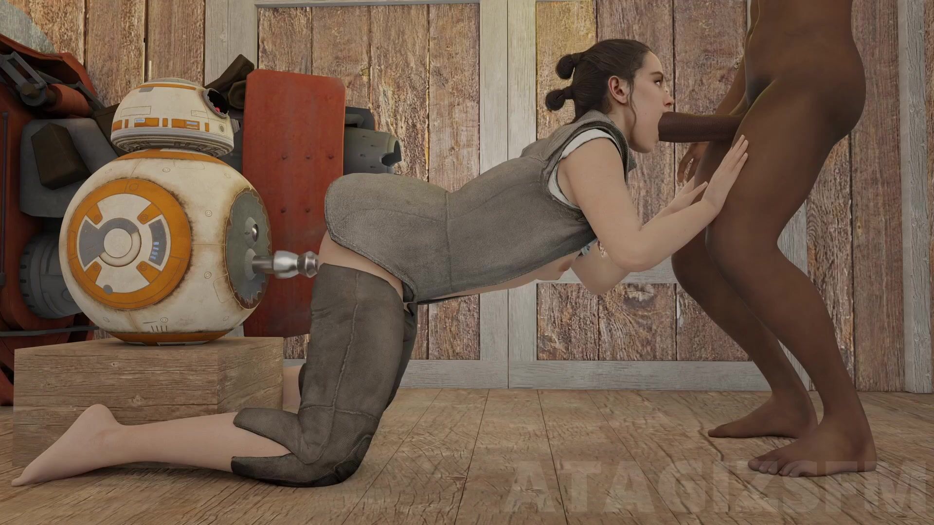 Star Wars XXX: Reys Intergalactic Gangbang Adventure with BB-8, Finn and Han Solo