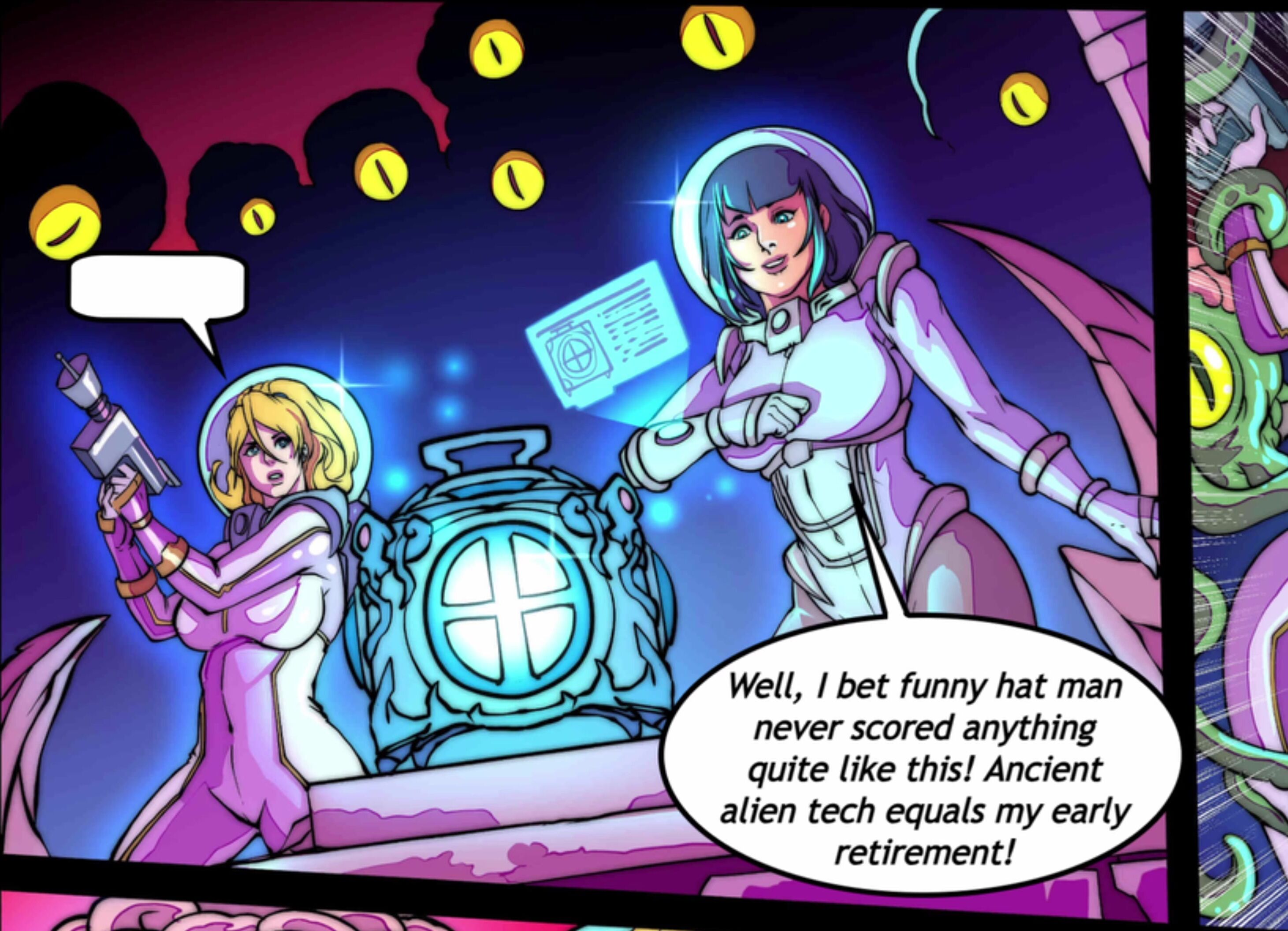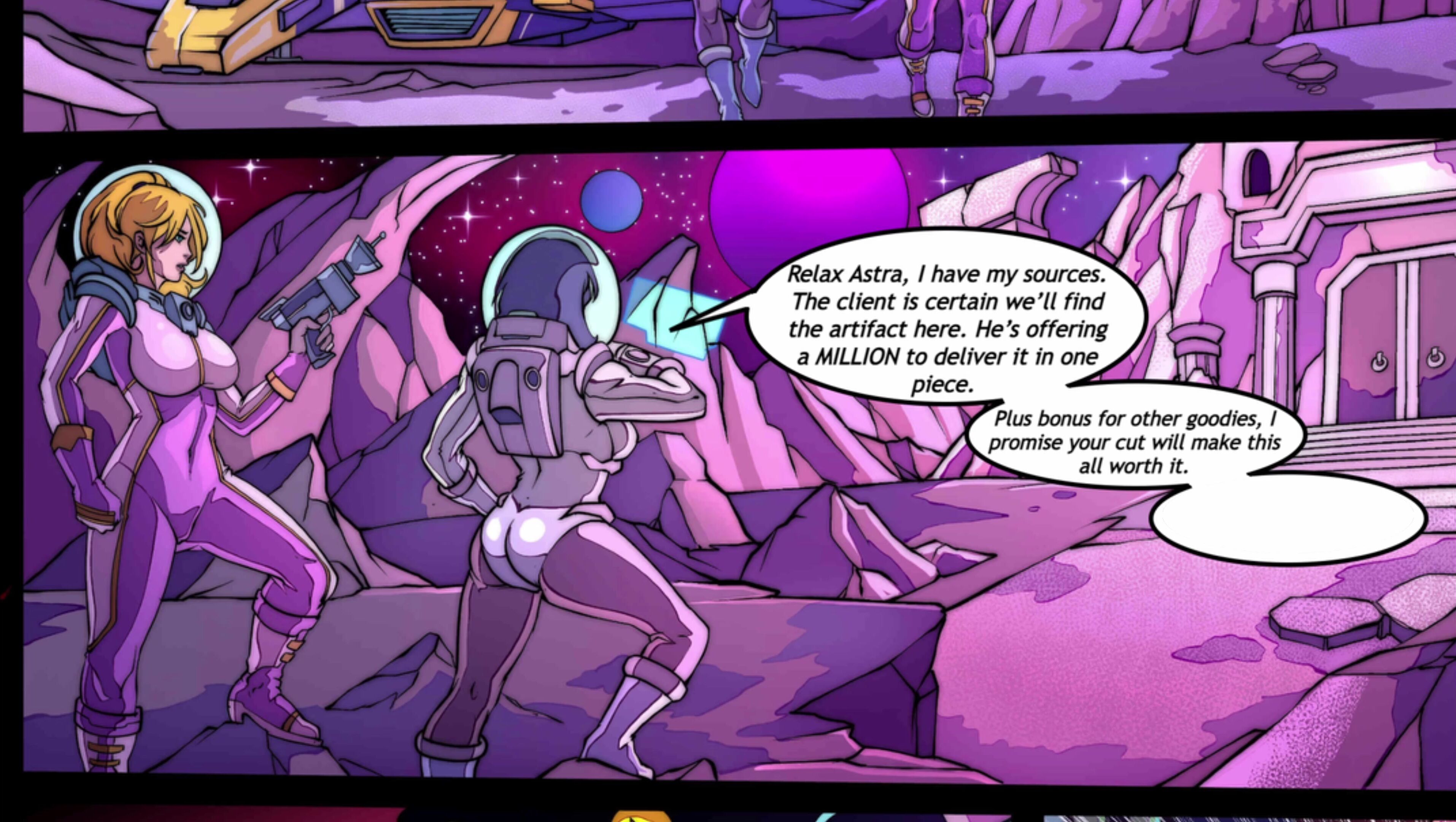In this first test of dubbing our audio comics, Astra and fellow space ranger Vamps embark to the desolate world of Omukra in search of ancient treasures, but what dangers await them? For more of our comics, art and games, consider supporting us on SubscribeStar! https://subscribestar.adult/galaxyofscum Cast and Crew: Written by Cryo: https://twitter.com/galaxyofscum Pages by: SkyFantasy https://twitter.com/SkyFantasyStdio Kassioppia as Astra: https://twitter.com/KassioppiaVA HTHarpy as Vamps: https://twitter.com/HTHarpy RandomTide on the SFX: https://twitter.com/random_tide