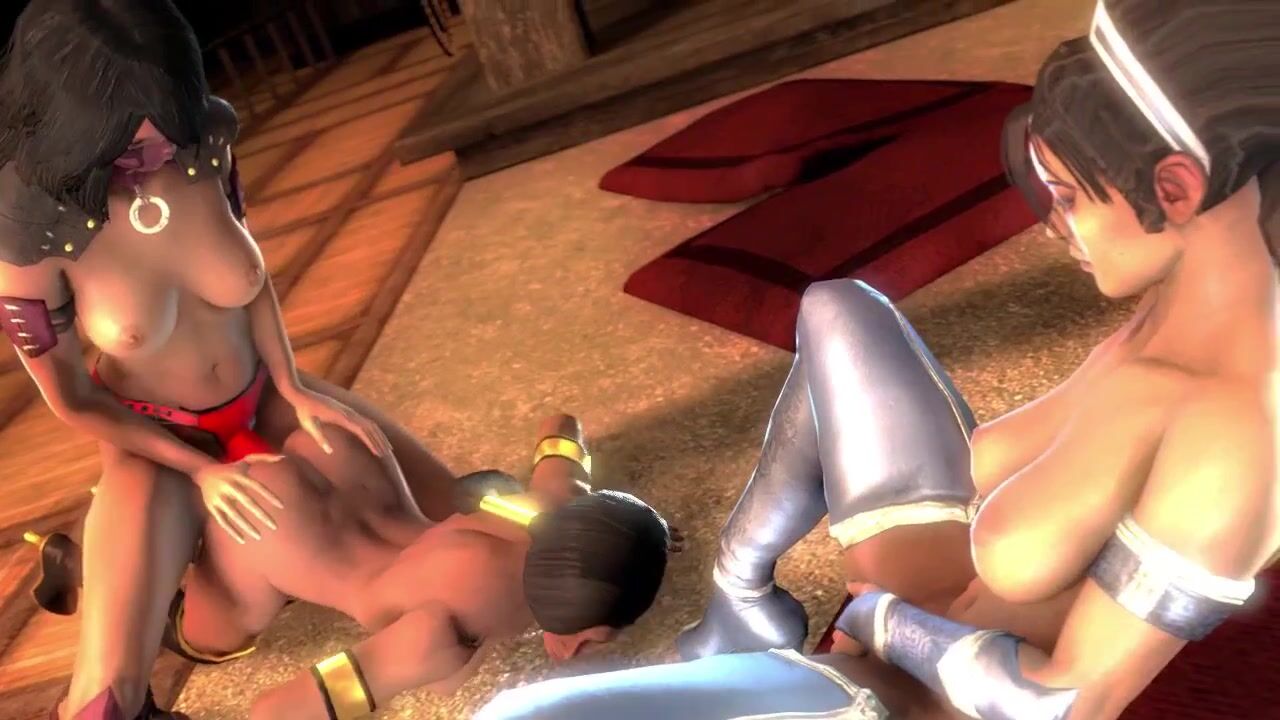 Mileena and Ayane have a steamy lesbian encounter with Artorias in a dungeon setting